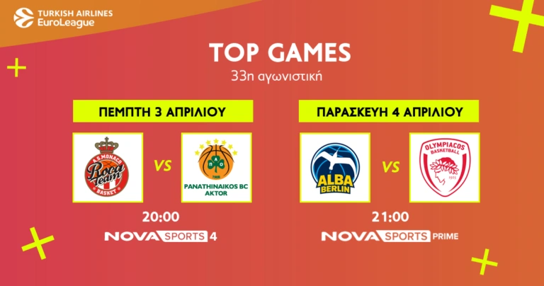 EuroLeague: Μονακό - Παναθηναϊκός AKTOR & Άλμπα Βερολίνου - Ολυμπιακός στο Novasports!