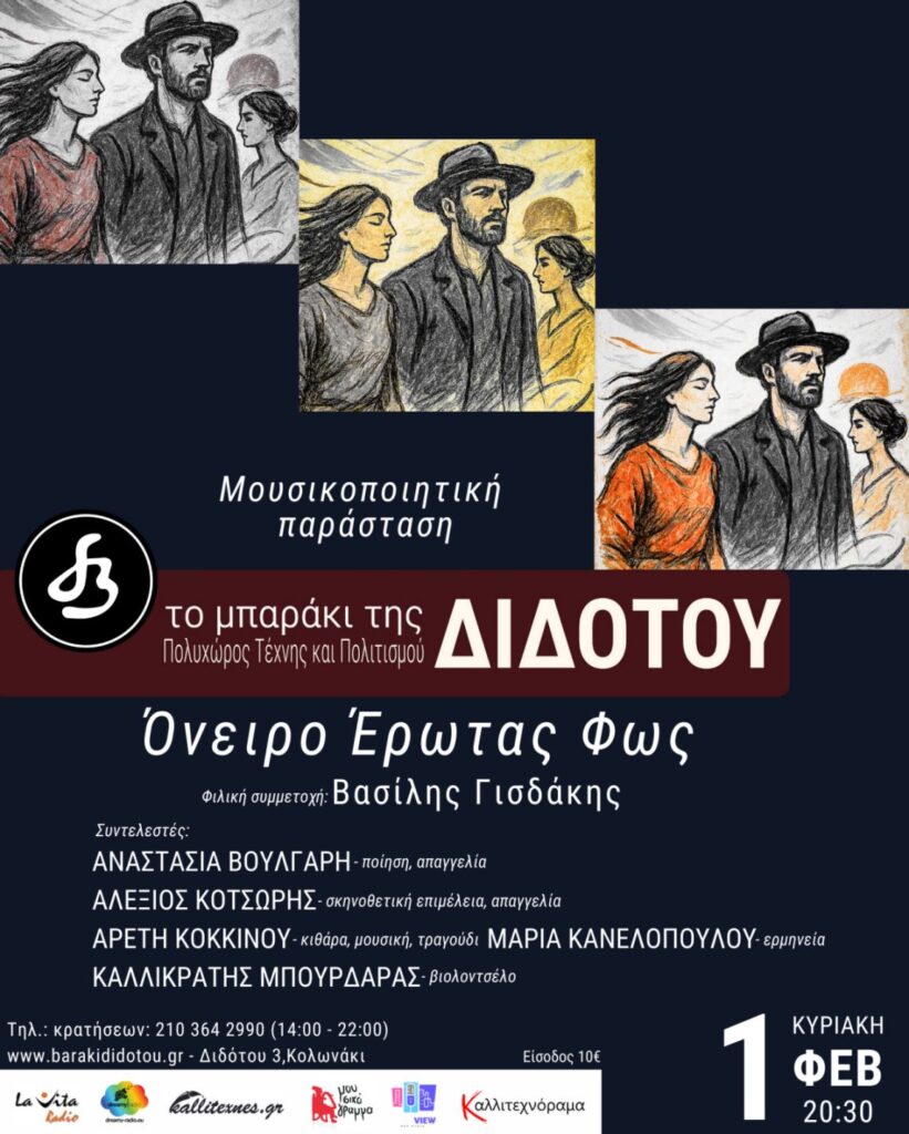 «Όνειρο – Έρωτας – Φως»: Μουσικοποιητική παράσταση στο Μπαράκι της Διδότου την Κυριακή 1η Φεβρουαρίου