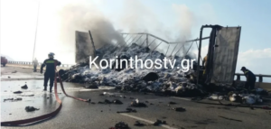 Τροχαίο στην Πατρών – Κορίνθου: Στις φλόγες ένα φορτηγό [Βίντεο]