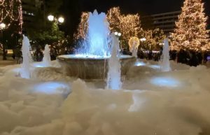Άφρισε το συντριβάνι στην πλατεία Συντάγματος