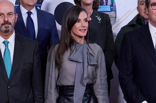 Η Βασίλισσα Λετίθια προκαλεί θαυμασμό με το ημιδιάφανο πουκάμισο και τη δερμάτινη φούστα