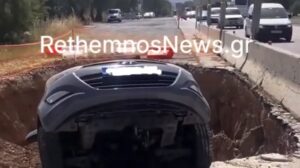Τροχαίο στον ΒΟΑΚ: Αυτοκίνητο εκσφενδονίστηκε στο χαντάκι λόγω της ολισθηρότητας του δρόμου