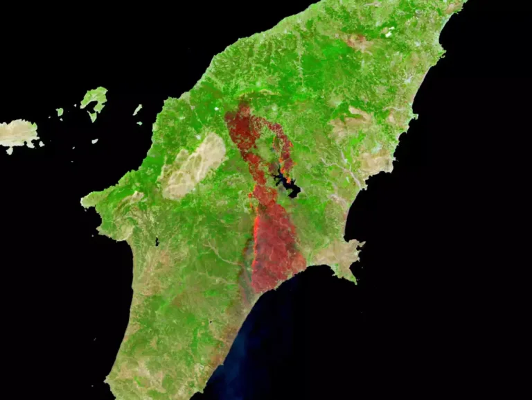 Φωτιά στη Ρόδο: Το νησί τυλιγμένο στις φλόγες – Η νέα συγκλονιστική φωτογραφία δορυφόρου