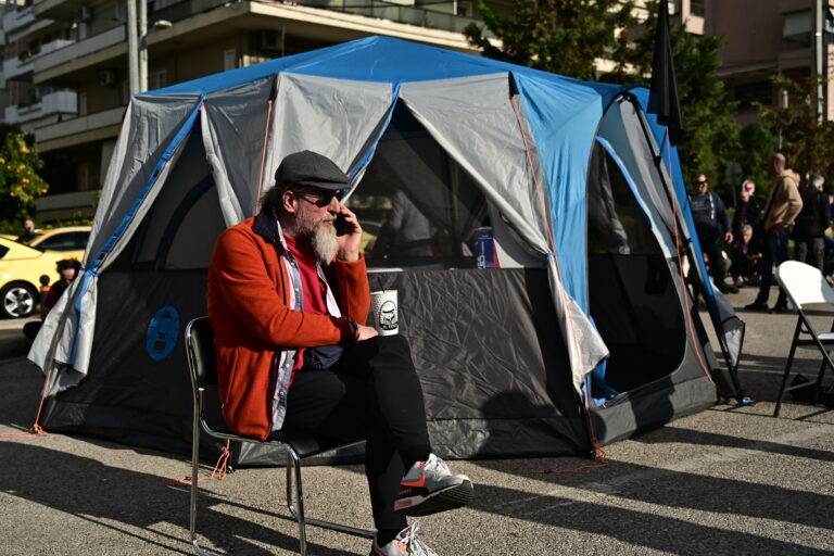 Απεργία: Στο υπουργείο Μεταφορών οι οδηγοί ταξί - Έστησαν αντίσκηνα [Εικόνες]