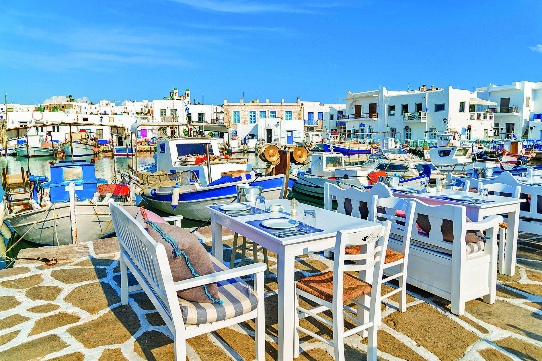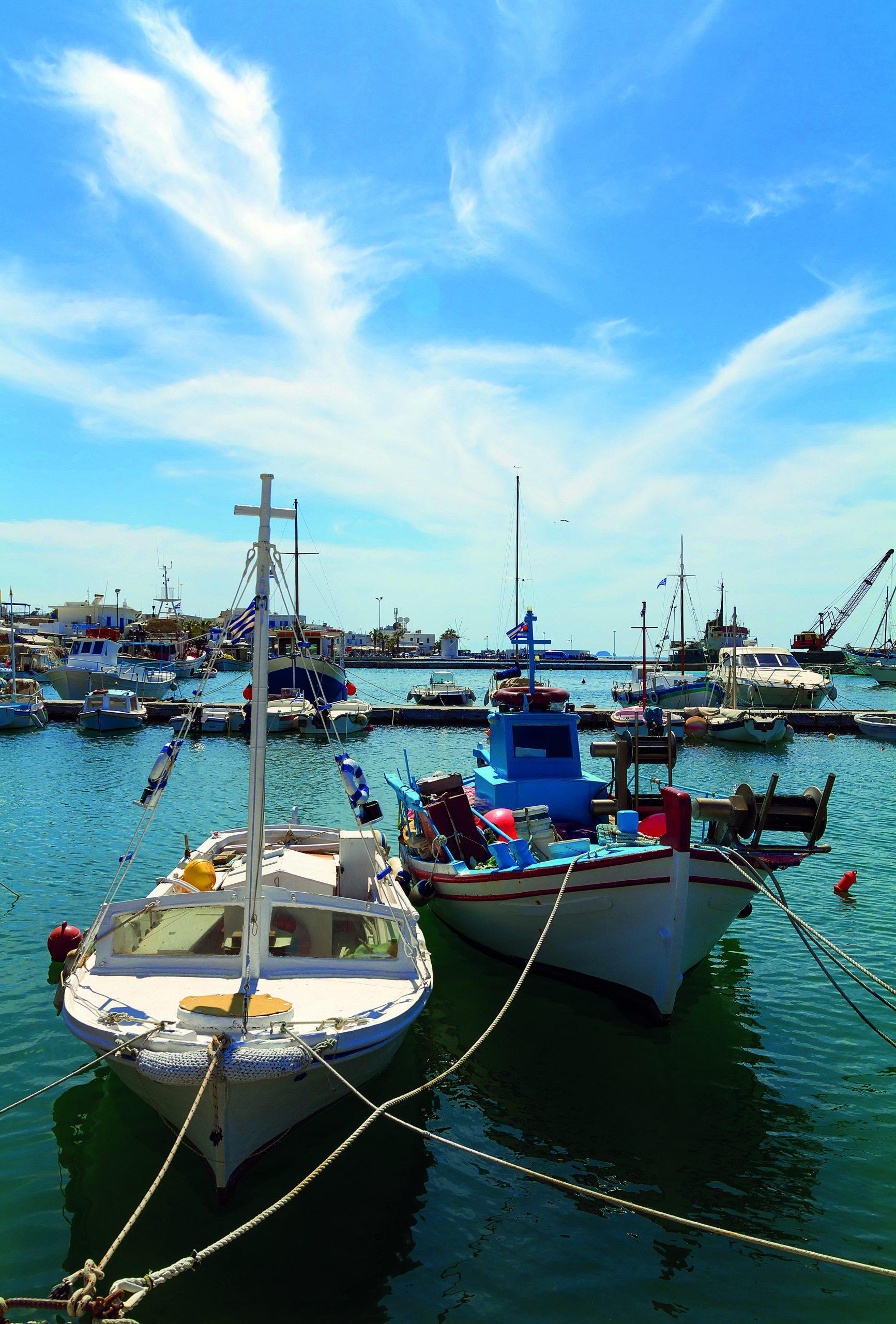 Δεύτερη σε μέγεθος, η Νάουσα, το κοσμικό ψαροχώρι, ένα από τα πιο όμορφα λιμανάκια στο Αιγαίο. Επισκεφθείτε το Κάστρο της Νάουσας. Το θαλασσοδαρμένο βενετσιάνικο κάστρο που κλείνει από τον Βορρά το λιμάνι της Νάουσας, είναι έργο της δυναστείας των Σομαρίπα του 15ου αιώνα και αποτελεί ένα ιδιότυπο οχυρωματικό έργο.