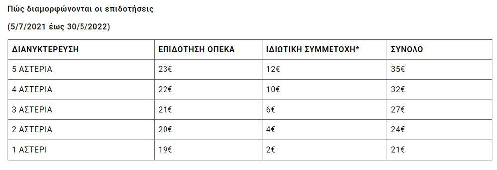 *Ανώτατο ποσό συμμετοχής δικαιούχου/διανυκτέρευση, χωρίς πρωϊνό