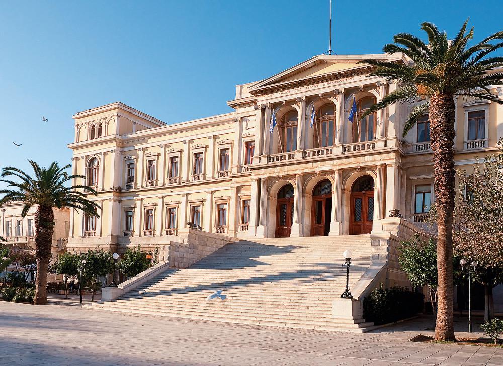 -Το Δημαρχείο της Σύρου είναι ένα εντυπωσιακό κτίριο που σχεδίασε ο Ερνέστος Τσίλερ και κατασκευάστηκε μεταξύ 1875 και 1891. Είναι χτισμένο στην κεντρική πλατεία Μιαούλη της Ερμούπολης.