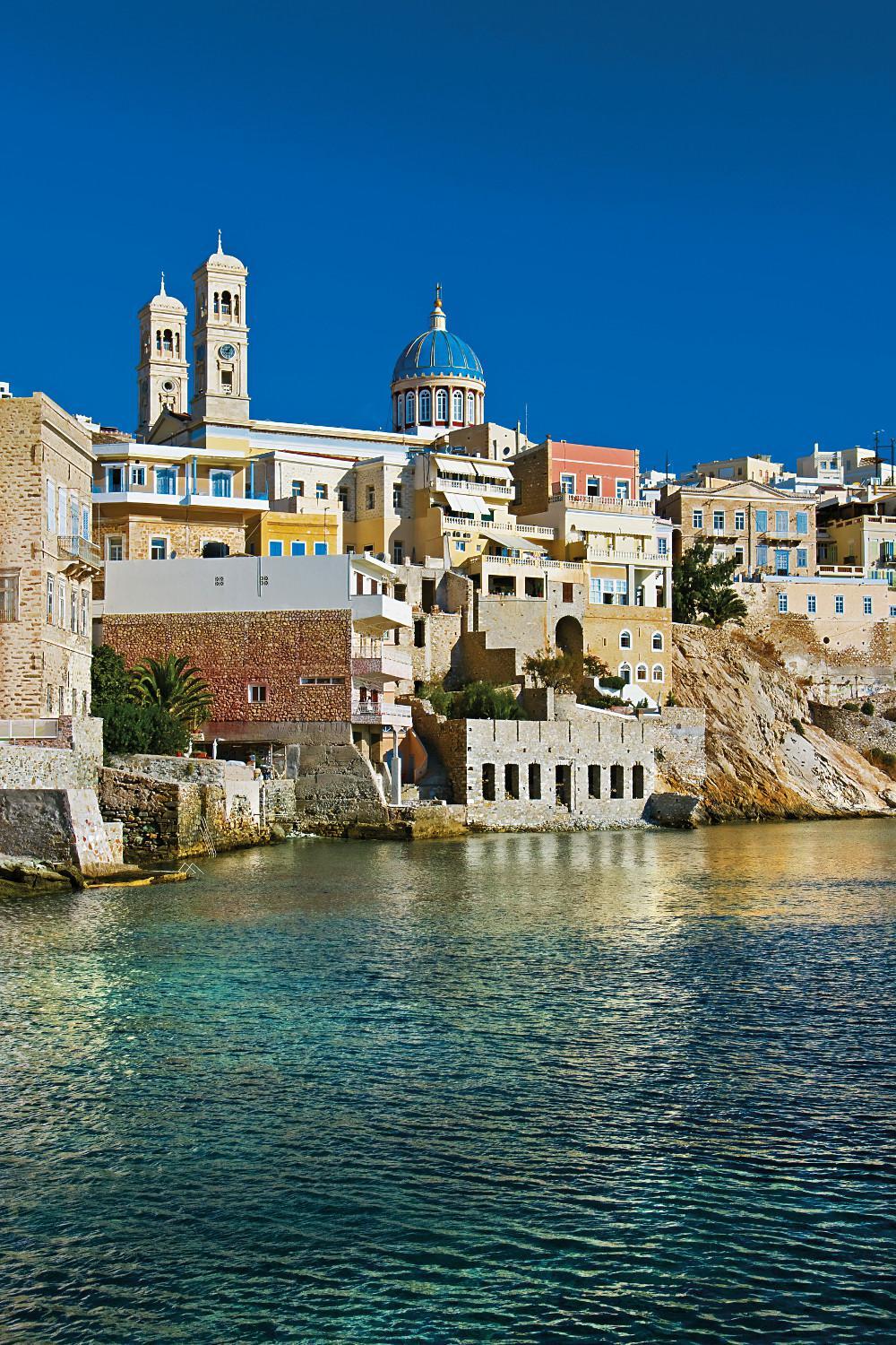 -Τα αρχοντικά σπίτια στη συνοικία Βαπόρια στην Ερμούπολη. Αρχοντικά μπαλκόνια που κρέμονται ακριβώς πάνω στη θάλασσα. Και, φυσικά, τον Ναό του Αγίου Νικολάου, του πολιούχου της πρωτεύουσας των Κυκλάδων, με τον χαρακτηριστικό γαλάζιο τρούλο, που εγκαινιάστηκε το 1870. Πρόκειται για την ομορφότερη εκκλησία της Ερμούπολης με εσωτερικό διάκοσμο.