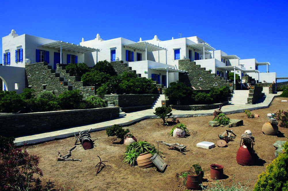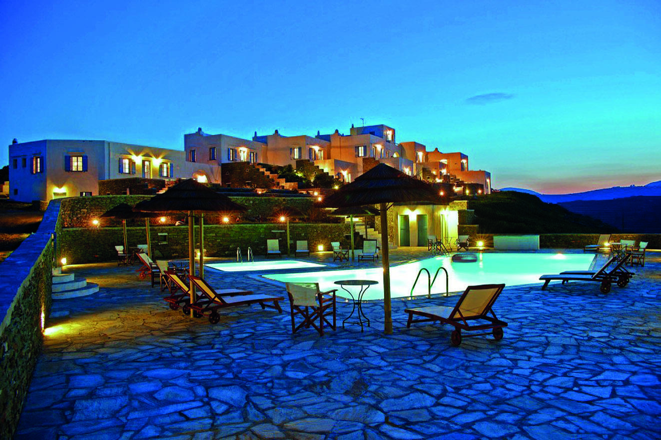 Βρίσκεται πολύ κοντά, μόλις 700 μέτρα από το γραφικό ψαροχώρι του Φάρου και τις ωραίες κοντινές παραλίες του Γλυφού και της Φασολούς. Απέχει 18 χλμ. από το λιμάνι στις Καμάρες και 8 χλμ. από τη γραφική Απολλωνία. Αποτελείται από 12 ανεξάρτητα διαμερίσματα και studios. Είναι χτισμένο σε γαλήνια τοποθεσία, στην κορυφή ενός μικρού λόφου, έχοντας πανοραμική θέα στο Αιγαίο.