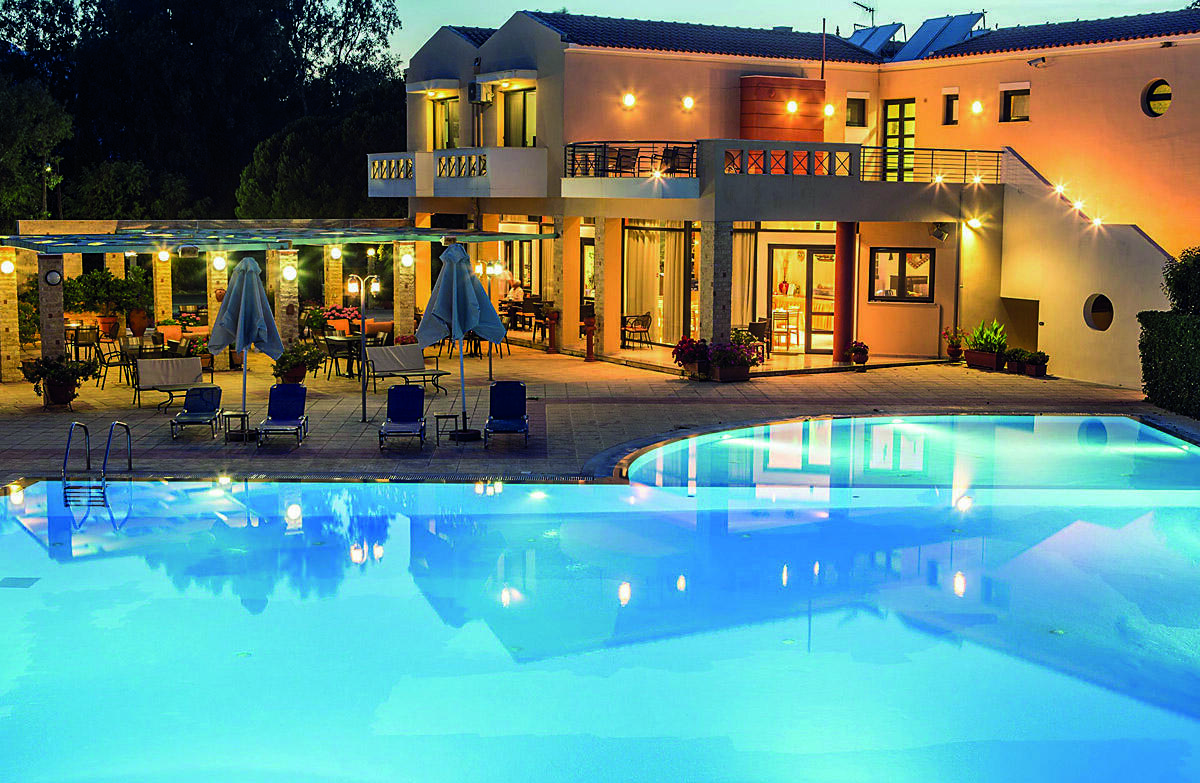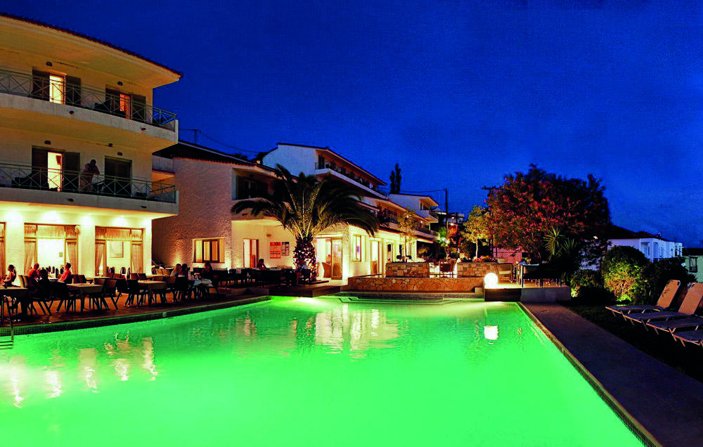 Στη συνέχεια μπορείτε να χαρείτε το μπάνιο στην πισίνα, να χαλαρώσετε στις ξαπλώστρες ή απλά να δροσιστείτε με ένα φυσικό χυμό στο μπαρ της πισίνας και να απολαύσετε ένα σνακ. Καθώς η μέρα προχωράει, στο εστιατόριο θα γευτείτε ντόπια παραδοσιακή αλλά και διεθνή κουζίνα, συνοδευόμενη πάντα με τοπικό ούζο. Το βράδυ απολαύστε κάποιο εξωτικό κοκτέιλ ή το αναψυκτικό σας στο μπαρ του ξενοδοχείου. Τα δωμάτια, πολυτελή, με πανοραμική θέα στη θάλασσα, διαθέτουν κλιματισμό, τηλέφωνο, μίνι μπαρ, ραδιόφωνο, ατομικό μπάνιο, σεσουάρ και χρηματοκιβώτιο.