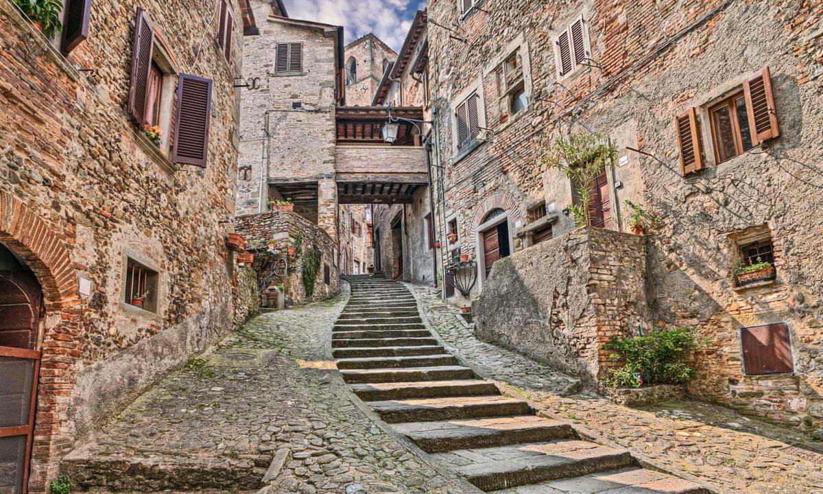 Αιωρούμενο στην πλαγιά ενός λόφου κοντά στα σύνορα Τοσκάνης-Ουμβρίας, το Ανγκιάρι είναι μια μικροσκοπική περιτειχισμένη πόλη, γεμάτη πεζόδρομους, γραφικά σοκάκια και παλιά αρχοντικά, χτισμένα από μισθοφόρους πολεμιστές που έζησαν στην πόλη την περίοδο της Αναγέννησης.