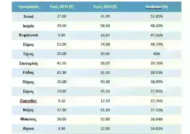 Ας δούμε πιο αναλυτικά την αύξηση των τιμών σε κάποιους από τους πιο δημοφιλείς προορισμούς την τελευταία 5ετια.