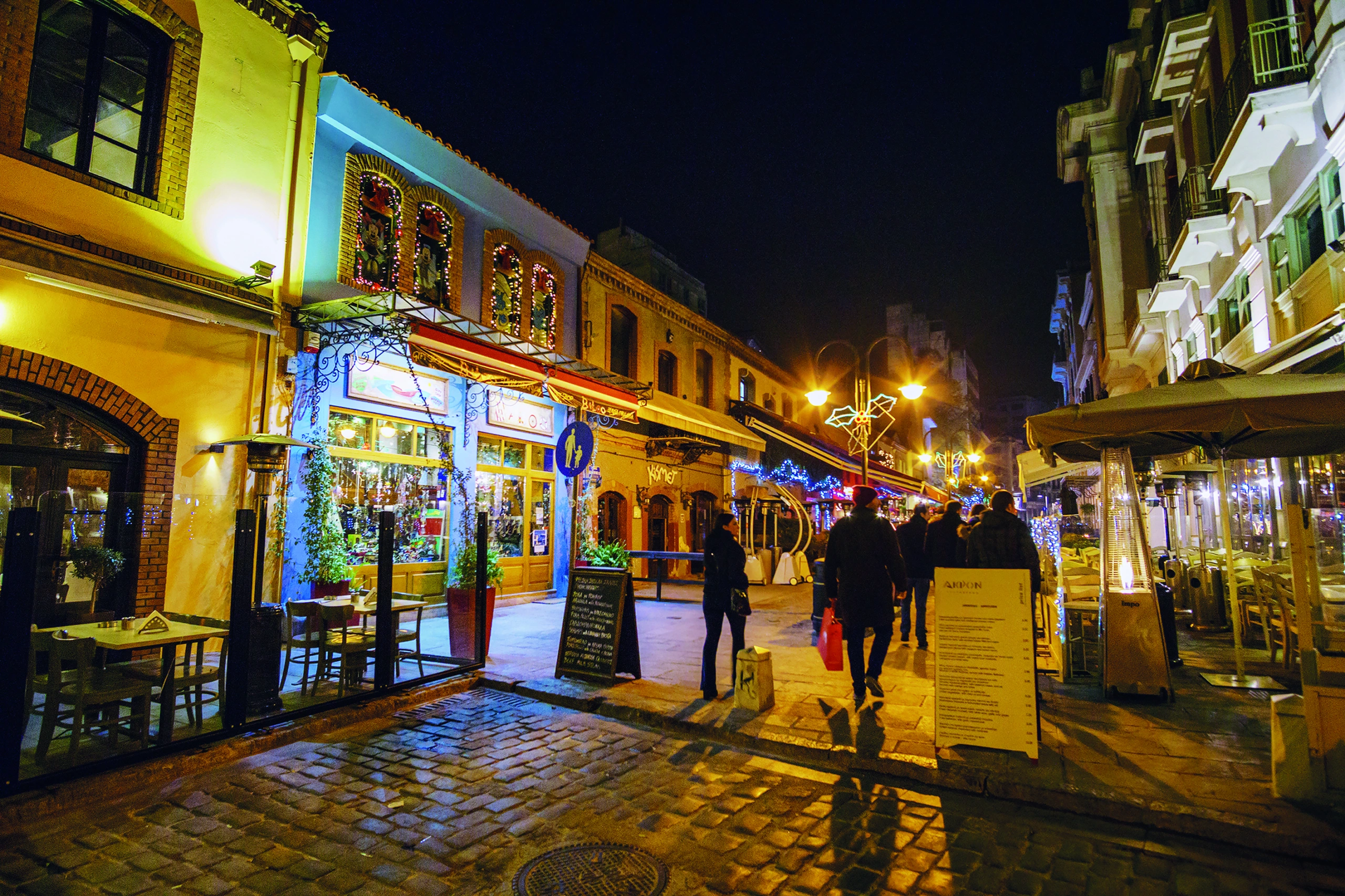 Στο κέντρο της πόλης, δημοφιλές σημείο νυχτερινής διασκέδασης παραμένουν από τις αρχές του 1990 τα Λαδάδικα με την παρακείμενη οδό Καλαποθάκη, τα καφέ και τα μπαρ στην παλιά παραλία και τα μοντέρνα εστιατόρια και μπαρ που λειτουργούν στις ιστορικές στοές της πόλης. Ακόμα, σταθερά σημεία αναφοράς παραμένουν οι ταβέρνες στις παραδοσιακές αγορές της πόλης, τα μπαρ και τα μικρά κομψά εστιατόρια στους σύγχρονους εμπορικούς δρόμους της και η περιοχή των οδών Ζεύξιδος και Ικτίνου. Οι πολυάριθμοι φοιτητές που ζουν στην πόλη προτιμούν την περιοχή γύρω από την πλατεία Ναυαρίνου, τη Ροτόντα και την οδό Αγγελάκη, καθώς και το Μπιτ-Παζάρ με τους γύρω δρόμους. Εναλλακτικά στέκια (ταβέρνες, ουζερί, μικρά καφέ-μπαρ), ιδιαίτερα προσφιλή στους Θεσσαλονικείς, βρίσκονται επίσης στην Ανω Πόλη. Τα τελευταία χρόνια, σε επίκεντρο της νυκτερινής διασκέδασης έχει αναδειχθεί η περιοχή της οδού Βαλαωρίτου, που τις βραδινές ώρες κατακλύζεται από κόσμο, τραπέζια και ποικίλες μουσικές επιλογές.