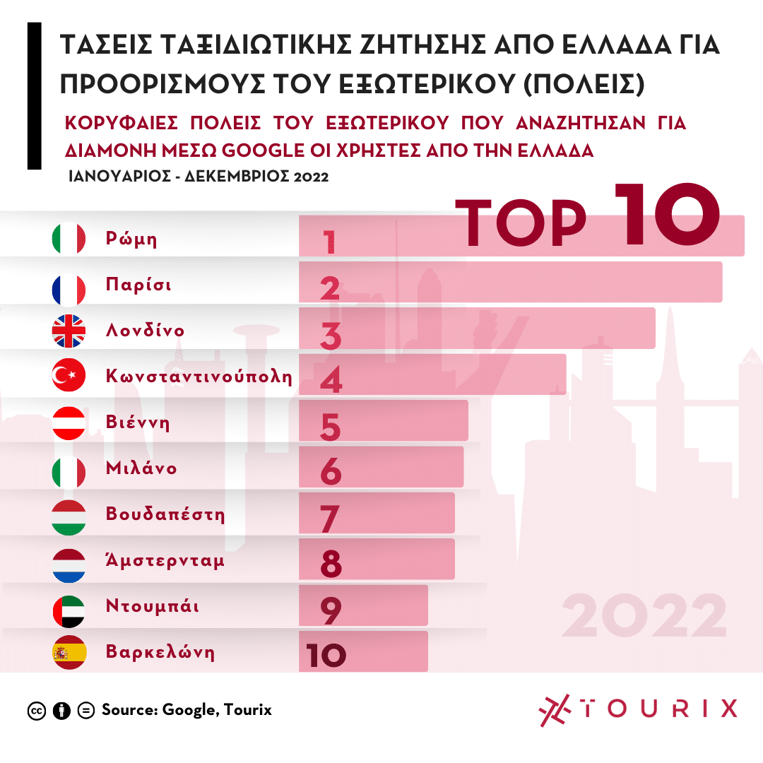 2022: Top 10 Προορισμοί Εξωτερικού (Πόλεις):