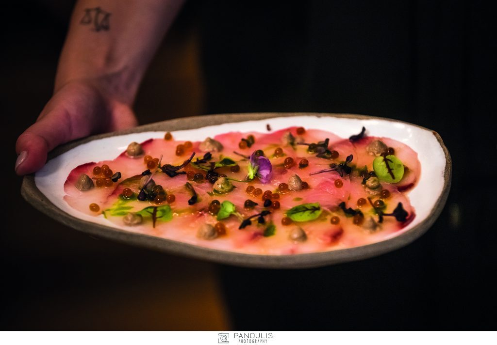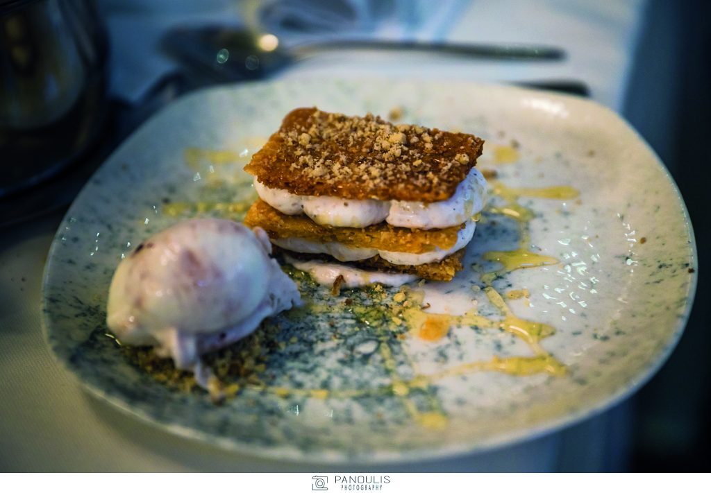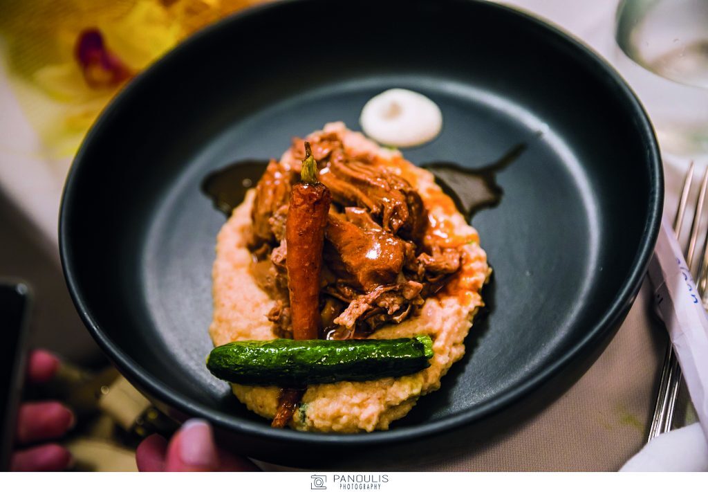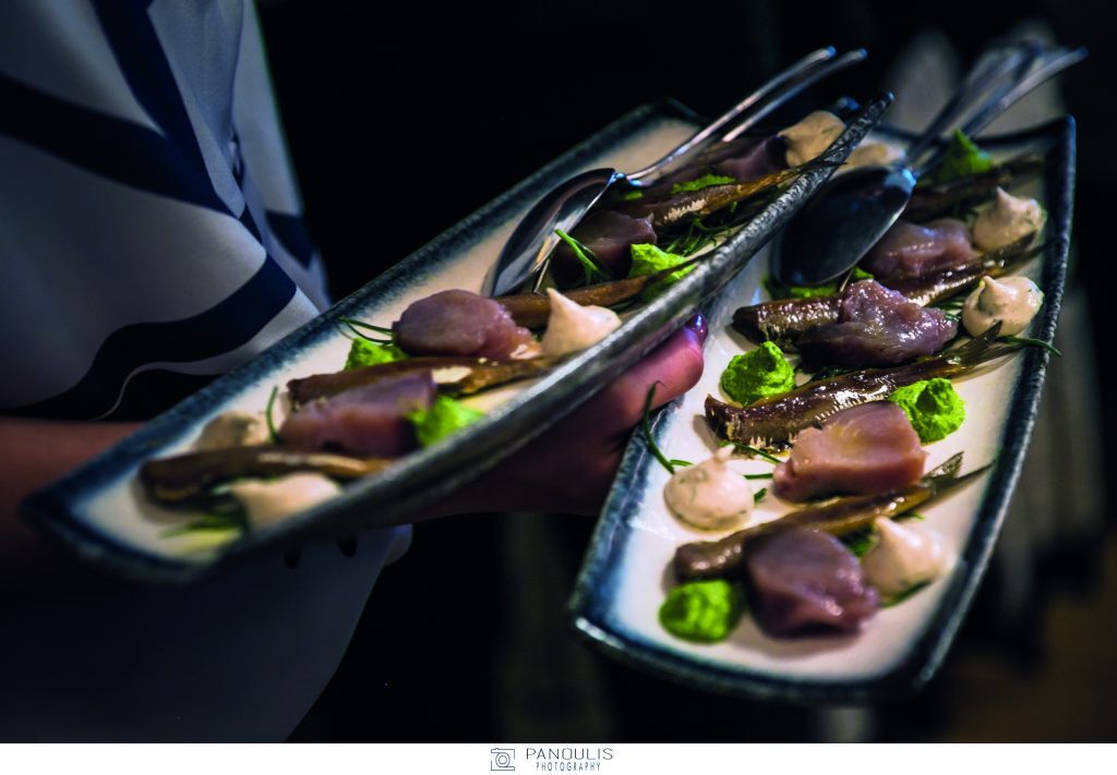 Η σεφ ωστόσο μας ταξίδεψε νοητά με τα εξαιρετικής αισθητικής, αλλά και ποιότητας πιάτα της από τον κόλπο της Καλλονής μέχρι την πατρίδα του ούζου, το Πλωμάρι, και τους ηφαιστιογενείς αμπελώνες τις Ανεμώτιας. Δοκιμάσαμε σαρδέλες, όστρακα, φρέσκα ψάρια, τοπικά τυριά και κρέατα, όλα μαγειρεμένα με τη μοναδική της δεξιοτεχνία κι αρτυσμένα με το υπέροχο εξαιρετικό παρθένο ελαιόλαδο που παράγει αυτός ο απέραντος ελαιώνας, που καλύπτει όλο το νησί.