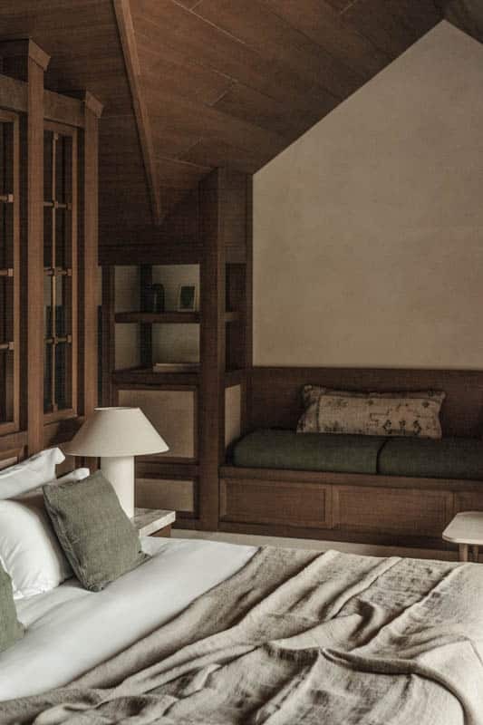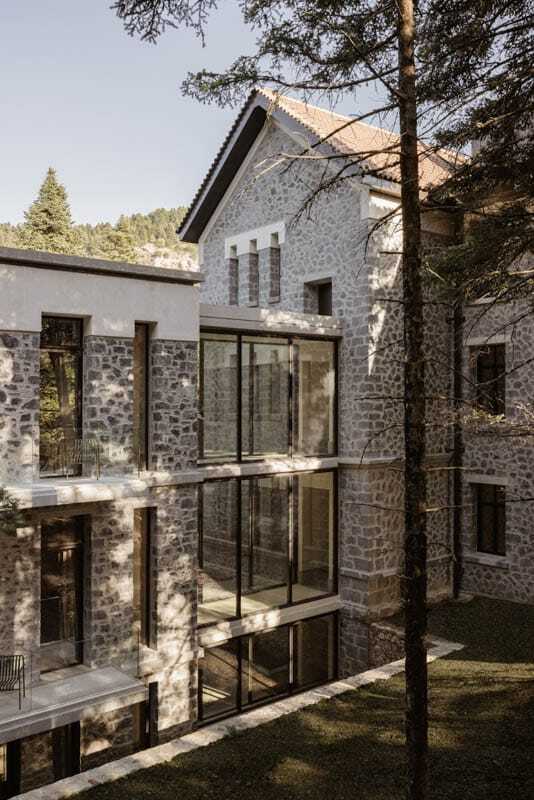 Τέτοια χαρακτηριστικά επεκτείνονται στα 32 δωμάτια. Διατηρώντας τις αυθεντικές ψηλές οροφές, κάθε χώρος είναι εξαιρετικά φωτεινός επιτρέποντας ουσιαστικά στο παρθένο ελατό δάσος να εισέλθει μέσα σε κάθε εσωτερικό σκηνικό.