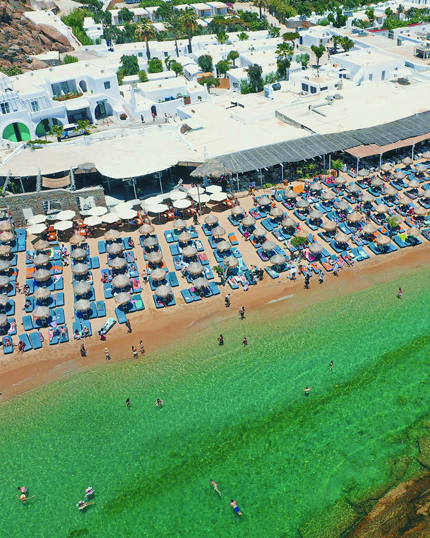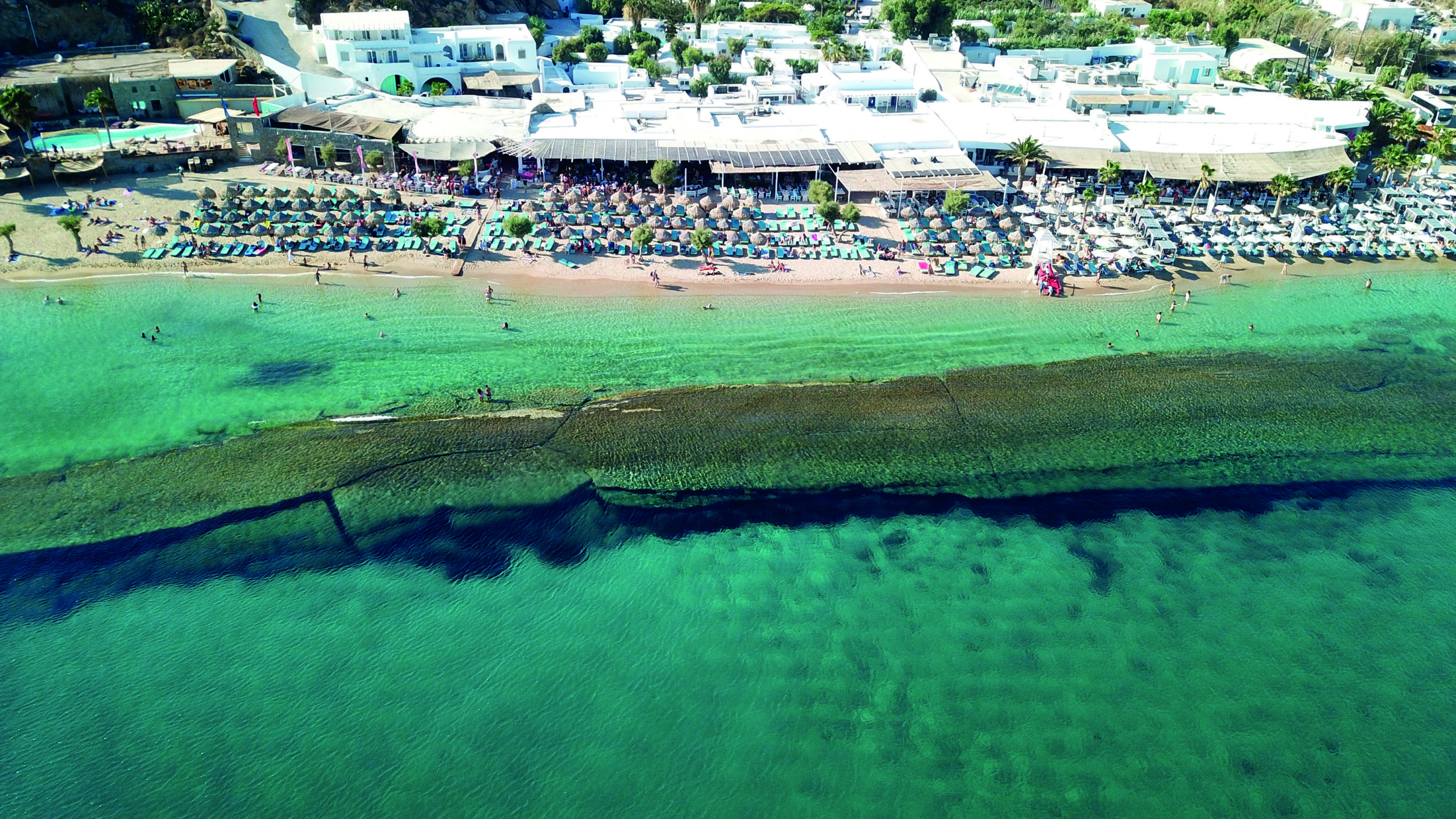 Η πιο δημοφιλής παραλία της Μυκόνου και μία από τις πιο γνωστές σε όλη την Ελλάδα, με εντυπωσιακές παρουσίες να την κατακλύζουν και ευφάνταστα beach bars. Η παραλία αυτή δεν αδειάζει πότε. Ακόμα και να μη σας αρέσει η πολυκοσμία της, σίγουρα αξίζει μία βόλτα για μια βουτιά, καθώς είναι όντως μια από τις εντυπωσιακές παραλίες του νησιού. Βρίσκεται σε απόσταση έξι χιλιομέτρων νοτιοδυτικά από τη Χώρα της Μυκόνου, γεωγραφικά τοποθετημένη μέσα σε έναν καταγάλανο κόλπο με υπέροχη θέα και πεντακάθαρη θάλασσα. Ολη η ακτογραμμή είναι ένας τεράστιος αμμώδης όρμος με διάφανα πράσινα και τιρκουάζ νερά. Στη δεξιά πλευρά της παραλίας επιτρέπεται ο γυμνισμός και είναι gay friendly. Τα ξέφρενα parties, που ξεκινούν από το απόγευμα και μετά, την έχουν κατατάξει ως την πιο εκκεντρική παραλία και σημαντικότερο πόλο έλξης του νεανικού κοινού και των εύπορων τουριστών.