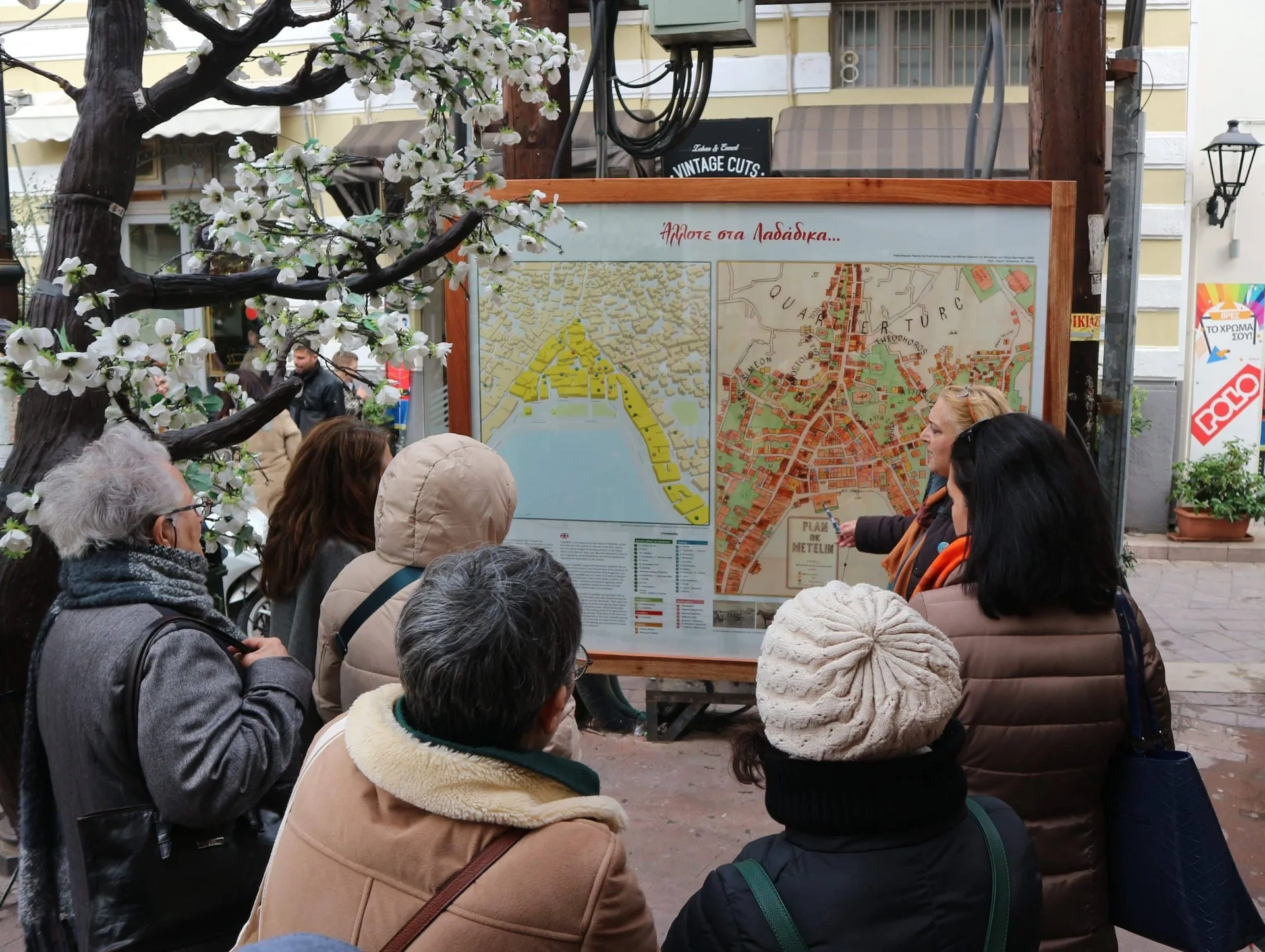 Κατά τη διάρκεια της δράσης έγιναν διαδοχικές ξεναγήσεις στην ευρύτερη περιοχή στα Λαδάδικα, σε πολλές δεκάδες συμπολίτες μας, με αναλυτικές πληροφορίες (αρχιτεκτονικές, επαγγελματικές κλπ) από έμπειρες επαγγελματίες ξεναγούς. Ας σημειωθεί ότι στο τέλος της κάθε διαδρομής, προσφέρθηκε κέρασμα από τοπικά προϊόντα σε όλους τους συμμετέχοντες.