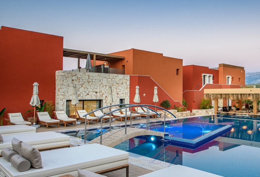 Οι 105 ευρύχωρες σουίτες, οι περισσότερες από τις οποίες έχουν ιδιωτικό μπαλκόνι και jacuzzi, τα τρία εστιατόρια και μπαρ που προσφέρουν υψηλή ποιότητα, οι δύο μεγάλες πισίνες και οι κορυφαίες εγκαταστάσεις ευεξίας δημιουργούν το τέλειο περιβάλλον αξέχαστων διακοπών. Σε αυτό έρχεται να προστεθεί η εξαιρετική γαστρονομία που βασίζεται στα φρέσκα ντόπια προϊόντα, την Κρητική και διεθνή κουζίνα.
