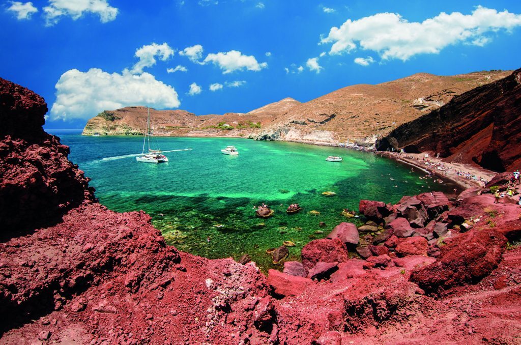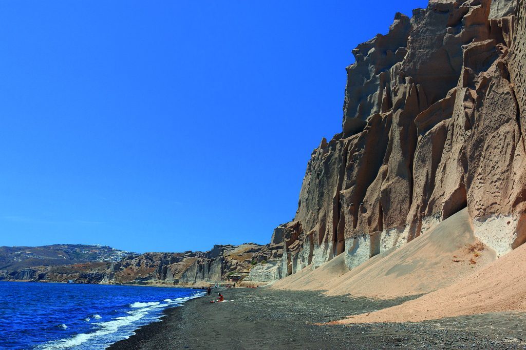 Η πιο διάσημη παραλία της Σαντορίνης είναι η Κόκκινη Αμμος. Μπλε κρυστάλλινα νερά και κόκκινα ηφαιστειογενή βράχια. Η Περίσσα απλώνεται σε 7 χιλιόμετρα μαύρης ψιλής άμμου, με πολλές ταβέρνες, μπαρ και επιλογές για θαλάσσια σπορ. Εάν αναζητάτε κάτι πιο εναλλακτικό ή μοναχικό, τότε σας προτείνουμε τον Κουλούμπο στην Οία, με λεπτά βότσαλα και έναν κατακόρυφο βράχο-γλυπτό, που προσφέρει φυσική σκιά.