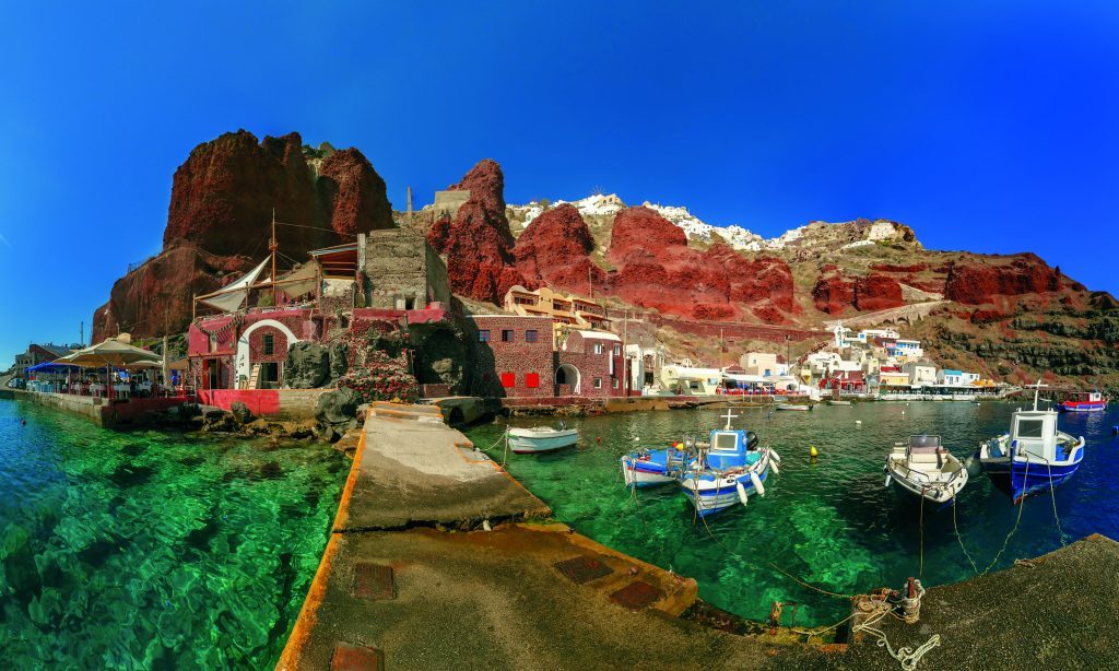 Ξεκινήστε την περιήγησή σας από τα νησιά της Καλντέρας με προορισμό το ηφαίστειο, που απέχει μόλις 10 λεπτά από τον Ορμο των Φηρών. Η ανάβαση στο ηφαίστειο, για να συναντήσετε τους ενεργούς κρατήρες του, είναι περίπου 20 λεπτά από βατό μονοπάτι. Αξίζει να φτάσετε στην κορυφή, να σκαλίσετε ανάμεσα στις μαύρες πέτρες και να δείτε ότι ακόμα καπνίζει και μυρίζει έντονα το θειάφι. Η Αρχαία Θήρα είναι η πόλη των ιστορικών χρόνων της Σαντορίνης. Βρίσκεται πάνω στο Μέσα Βουνό σε μια οχυρή θέση που δεσπόζει σε όλο το νησί, σε υψόμετρο 385 μ.