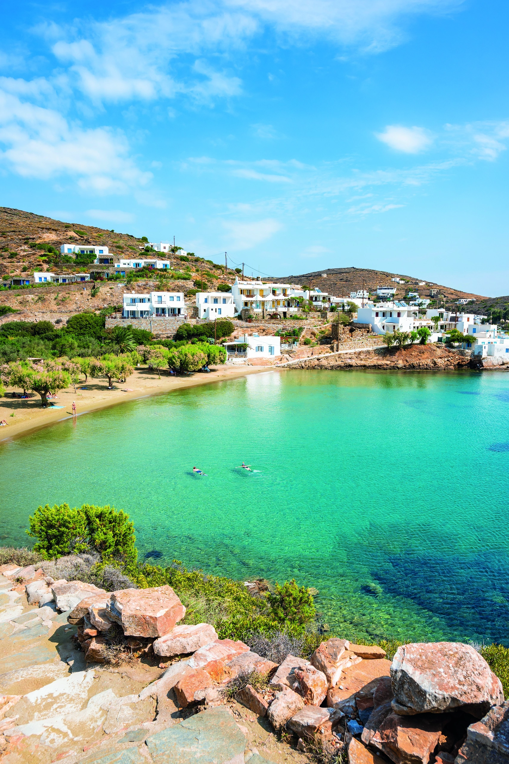 Καθεμιά ξεχωρίζει για την ηρεμία της, τα πεντακάθαρα νερά και τη δυνατότητα να συνδυάσεις το μπάνιο σου με μια βόλτα στο λιμανάκι ή μια επίσκεψη σε ένα παραθαλάσσιο καφενείο. Στο βόρειο άκρο της Σίφνου, η Χερρόνησος παραμένει ένα από τα πιο αυθεντικά και ήσυχα μέρη του νησιού. Μικρό ψαροχώρι, με λιγοστά σπιτάκια και ήρεμη παραλία με πεντακάθαρα νερά, προσφέρει την επιστροφή στις πιο αγνές μορφές διακοπών, χωρίς κοσμοσυρροή. Ο κόλπος του Βαθιού έχει πλατιά αμμώδη ακτή, με ρηχά νερά, ιδανικά για παιδιά και έναν γραφικό οικισμό. Είναι η ιδανική επιλογή για οικογενειακές διακοπές, αλλά και για ρομαντικούς περιπάτους το σούρουπο. Η περιοχή φιλοξενεί επίσης εξαιρετικές ταβέρνες. Κρυμμένη δίπλα στη Χρυσοπηγή, την εμβληματική εκκλησία της Σίφνου που είναι χτισμένη πάνω σε βράχο, η παραλία Αποκοφτό προσφέρει ήρεμες βουτιές και θέα που μαγεύει. Μικρή και προστατευμένη, ιδανική για όσους επιθυμούν να αποφύγουν τη φασαρία και να αφεθούν στην απλότητα της φύσης.