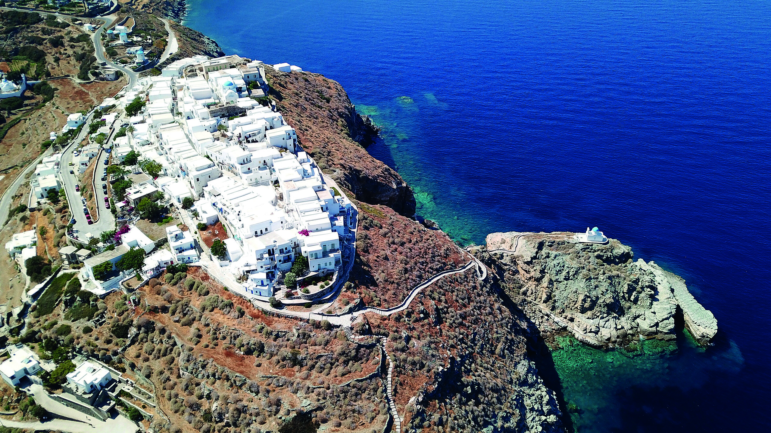 Η πρωτεύουσα της Σίφνου, η Απολλωνία, είναι χτισμένη αμφιθεατρικά, με χαρακτηριστικά λευκά σπίτια, ασβεστωμένα σοκάκια και παραδοσιακά καφενεία που σε καλούν για μια ρακή με μεζέ. Το βράδυ, η ζωή συγκεντρώνεται στον κεντρικό πεζόδρομο -γνωστός ως το Στενό-, όπου εναλλάσσονται τα εστιατόρια, τα κομψά μπαράκια, τα μαγαζιά με τοπικά προϊόντα και οι μικρές γκαλερί. Μην παραλείψετε να επισκεφθείτε το Αρχαιολογικό Μουσείο, αλλά και τις πολλές εκκλησίες της περιοχής, όπως την Παναγία Ουρανοφόρα με τη χαρακτηριστική αρχιτεκτονική. Η μεσαιωνική καστροπολιτεία του νησιού είναι από τα πιο ατμοσφαιρικά μέρη της Σίφνου. Περιπλανηθείτε στα στενά πέτρινα δρομάκια με τις καμάρες, κοιτάξτε από τα φυσικά μπαλκόνια προς το Αιγαίο και ανακαλύψτε μικρές εκκλησίες, κάθε μία με το δικό της χρώμα. Το Κάστρο κατοικείται ακόμη, διατηρώντας τη μοναδική του γοητεία μέσα στους αιώνες. Από εκεί, ακολουθήστε το μονοπάτι για την εκκλησία των Επτά Μαρτύρων, ένα από τα πιο φωτογραφημένα σημεία του νησιού, χτισμένη πάνω σε βράχο που βουτά στο πέλαγος. Λίγα λεπτά από την Απολλωνία, ο Αρτεμώνας είναι ένα πανέμορφο χωριό με νεοκλασικά αρχοντικά, πλακόστρωτα σοκάκια και ατμόσφαιρα παλιάς εποχής. Ιδανικό για απογευματινές βόλτες, μικρές ανακαλύψεις και ήρεμα δείπνα μακριά από τη φασαρία.