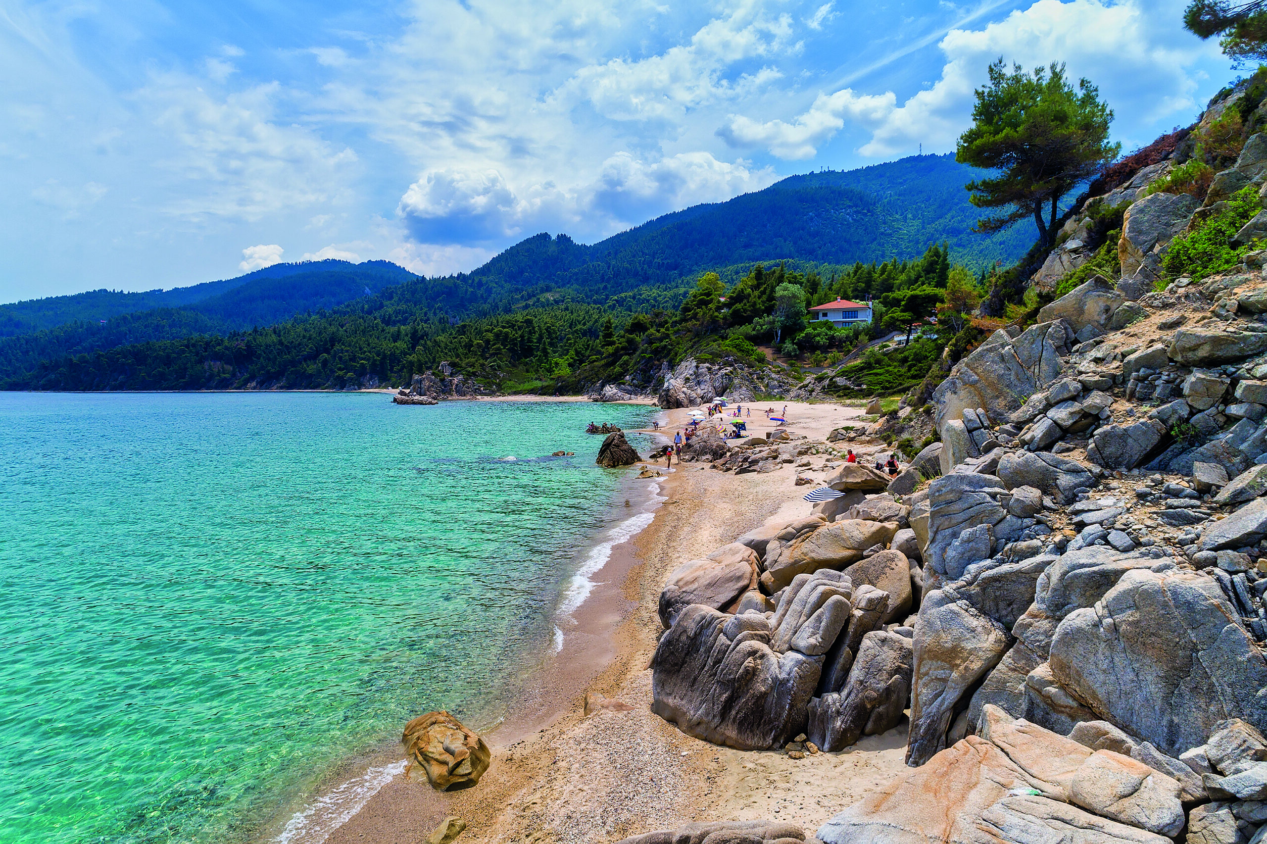 – Τορώνη, μία από τις μεγαλύτερες παραλίες της χερσονήσου, με συνδυασμό οργανωμένων εγκαταστάσεων και ελεύθερων ζωνών.