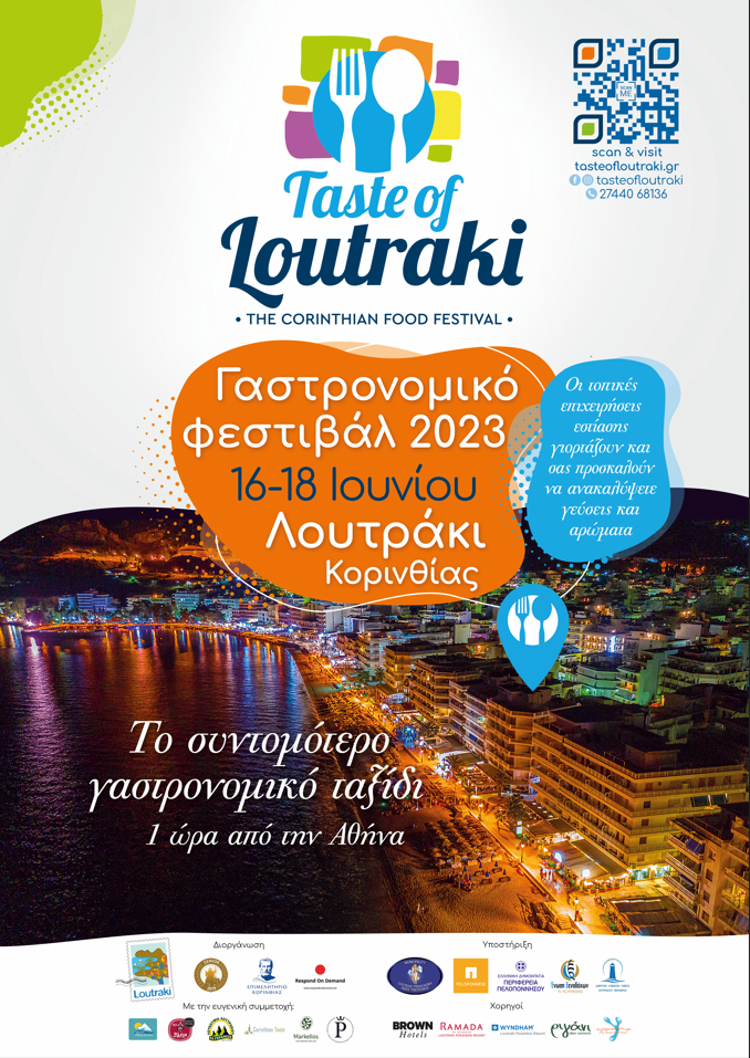 Mέσω της συνδιοργάνωσης του Τουριστικού Οργανισμού Λουτρακίου, του Συλλόγου Επισιτιστών Λουτρακίου «Ο Ξένιος Ζευς» και του Επιμελητηρίου Κορινθίας, στο Λουτράκι, στην Περαχώρα και στους Αγίους Θεοδώρους επιχειρήσεις εστίασης και ξενοδοχεία, κορυφαίοι σεφ, Sommelier οίνου και νερού καθώς και παραγωγοί τοπικών προϊόντων, σας προσκαλούν να γνωρίσετε, να γευτείτε και να απολαύσετε τα προϊόντα της Κορινθιακής γης!
