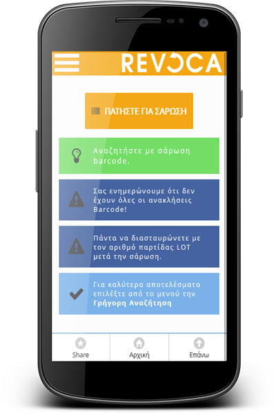 Σκεφτείτε πριν αγοράσετε, πρωτίστως όμως ελέγξτε το κινητό σας. Μια καινοτόμα, δωρεάν εφαρμογή, το Revoca, που λειτουργεί μόνο λίγους μήνες, ενημερώνει τους καταναλωτές για τις ανακλήσεις επικίνδυνων προϊόντων και δίνει τη δυνατότητα να ελέγχουν πόσο ασφαλή είναι τα προϊόντα που έχουν ήδη αγοράσει ή όσα πρόκειται να αγοράσουν.