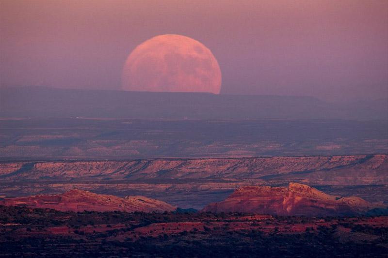 Η ανατολή της υπερ-Σελήνης πάνω από την Κοιλάδα των Θεών κοντά στην περιοχή Mexican Hat στην Γιούτα