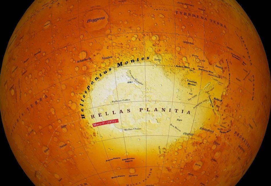 H «Hellas Planitia» έχει έκταση 2300 χιλιόμετρα και σχηματίστηκε από την πτώση μεγάλου αστεροειδούς πριν 3,9 δισεκατομμύρια χρόνια. Η διαφορά ύψους από τις παρυφές μέχρι τη βάση είναι περίπου 9 χιλιόμετρα ενώ λόγω του μεγέθους της είναι το πλέον ευδιάκριτο σημείο στον πλανήτη Άρη.