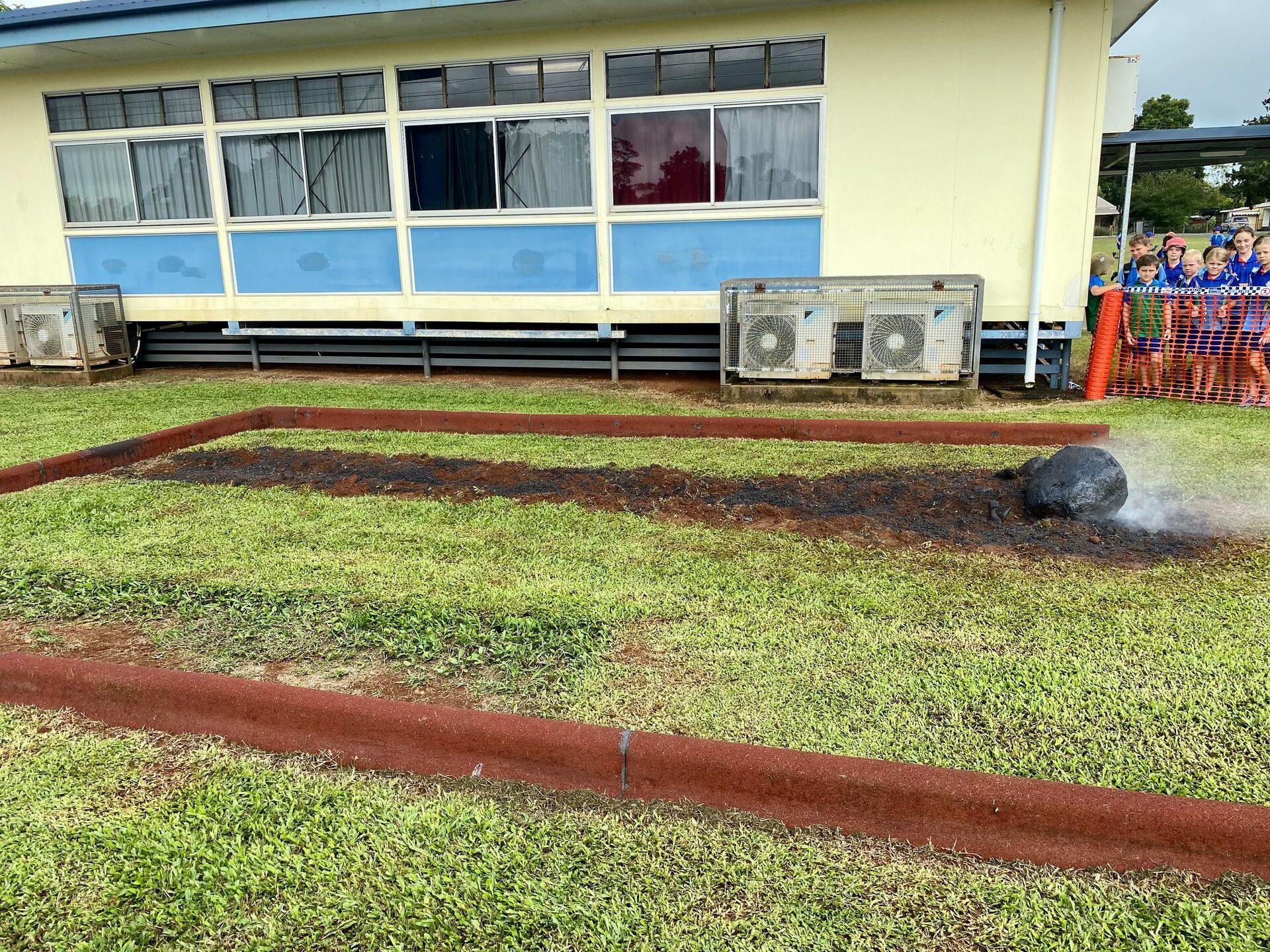 Στην αυλή του σχολείου, στο Queensland της Αυστραλίας, τοποθετήθηκε μια σκουρόχρωμη πέτρα που άχνιζε, η οποία υποτίθεται πως ήταν ο μετεωρίτης, και οι μαθητές ανέλαβαν να αναπαραστήσουν με ρεαλισμό την διαδικασία που ακολουθείται σε τέτοια περιστατικά, παίρνοντας συνεντεύξεις από τους «μάρτυρες» και μιλώντας με τις αρμόδιες αρχές.