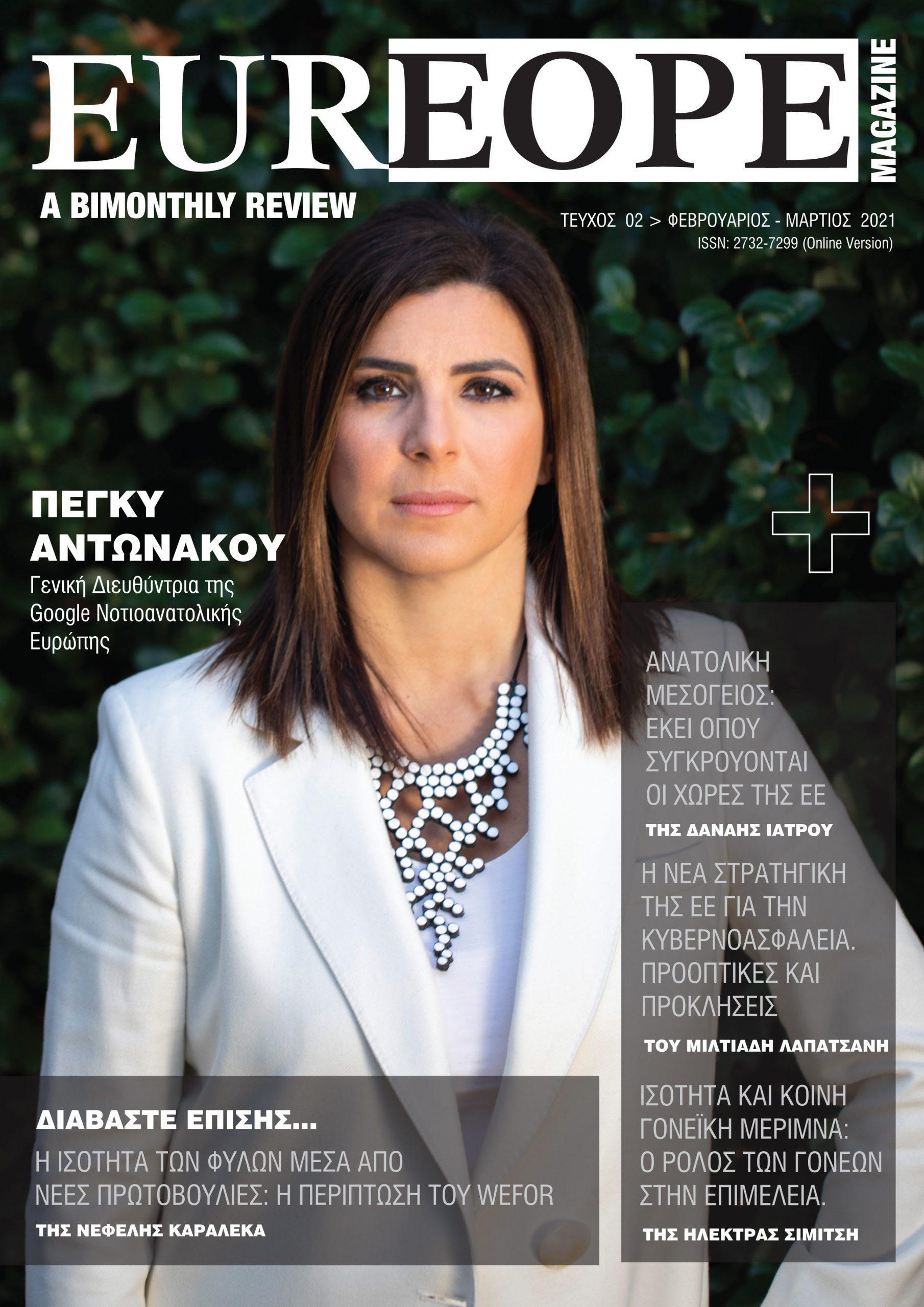 Κεντρικό πρόσωπο του δεύτερου τεύχους είναι η κα Πέγκυ Αντωνάκου, Γενική Διευθύντρια της Google Νοτιοανατολικής Ευρώπης. Μέσω της συνέντευξης που παραχώρησε στην Επιστημονική Ομάδα Ευρωπαϊκών Θεμάτων του Ελληνικού Οργανισμού Πολιτικών Επιστημόνων – ΕΟΠΕ, περιγράφει το ρόλο και την προσφορά της Google στο σύγχρονο άνθρωπο, αισιοδοξεί για τον ψηφιακό μετασχηματισμό της Ελλάδας και θεωρεί το κίνημα #MeToo ως μια ευκαιρία για να αντικαταστήσουμε τα στερεότυπα αιώνων με οικουμενικές έννοιες.