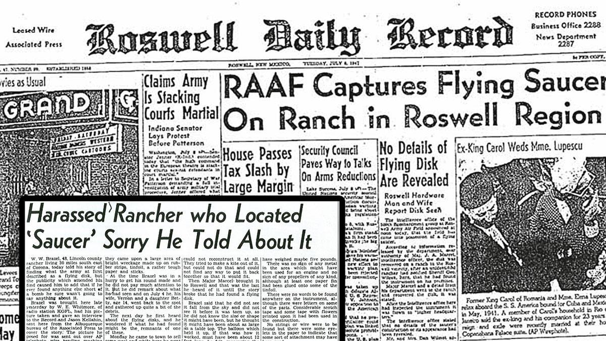Η εφημερίδα «Roswell Daily Record» δημοσιεύει με πηχυαίους τίτλους: «Η RAAF ανακτά ιπτάμενο δίσκο από ράντσο στην περιοχή του Ρόσγουελ» (8 Ιουλίου 1947). Στην κάτω γωνία ο τίτλος: «Ο παρενοχληθείς κτηνοτρόφος που εντόπισε τον “δίσκο” μετανιώνει που το αποκάλυψε».