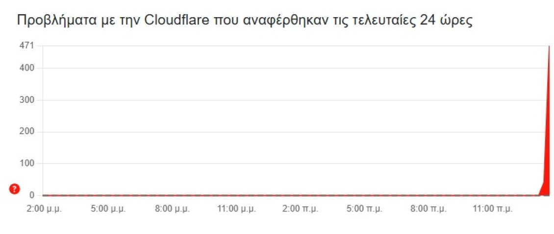 Οι αναφορές χρηστών στο downdetector δείχνουν προβλήματα στο Cloudflare, με τον σέρβερ να φαίνεται να αντιμετωπίζει λειτουργικά προβλήματα.