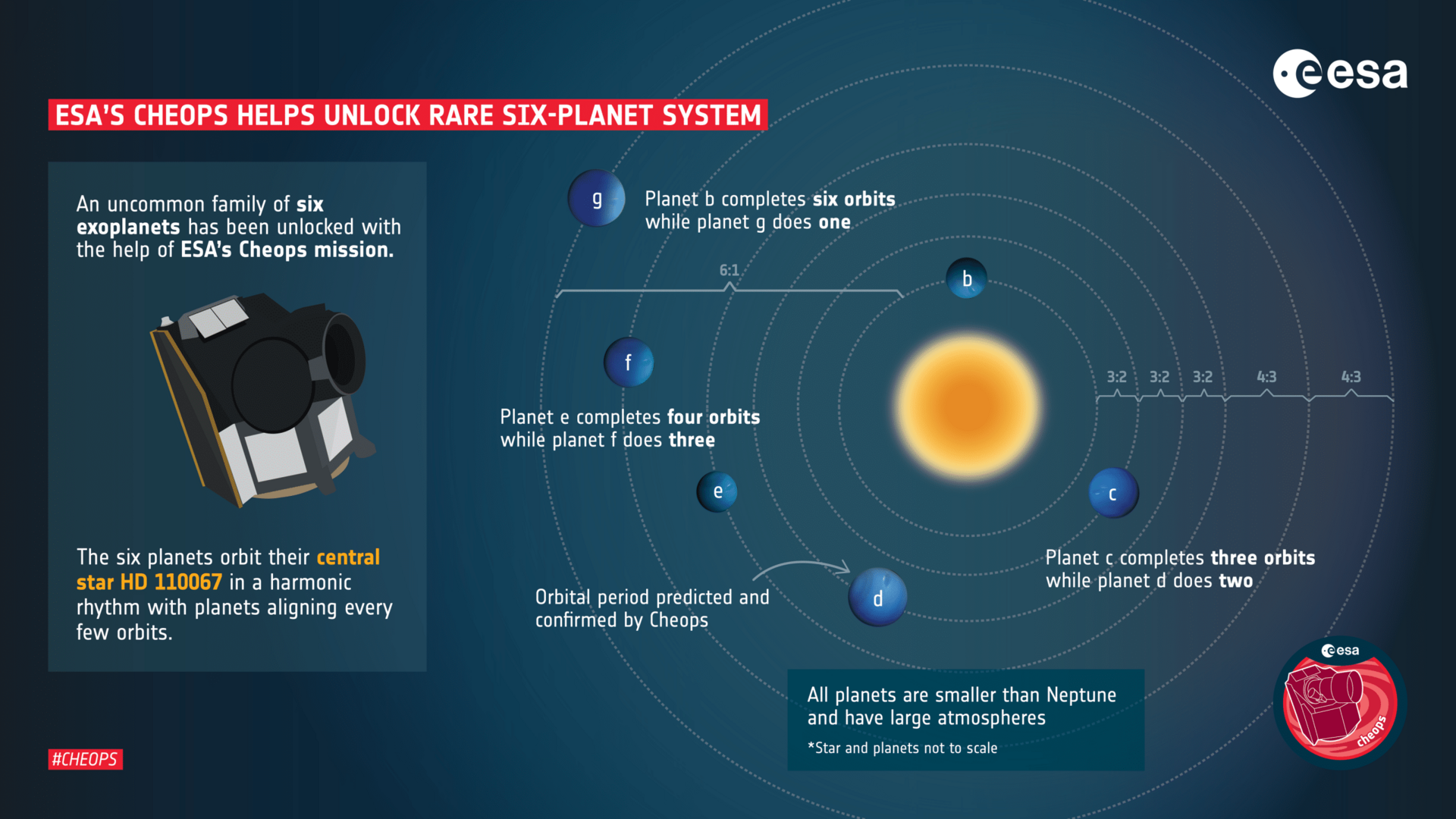 Οι έξι πλανήτες βρίσκονται σε τροχιά γύρω από το HD 110067, ένα φωτεινό αστέρι στον αστερισμό της Κόμης Βερενίκης, περίπου 100 έτη φωτός μακριά, που είναι ορατό από το βόρειο ημισφαίριο της Γης. Το 2020 το διαστημικό τηλεσκόπιο TESS της NASA, που είναι σχεδιασμένο για την αναζήτηση εξωπλανητών, εντόπισε βυθίσεις στη φωτεινότητα του άστρου, που υποδεικνύουν ότι πλανήτες περνούν μπροστά από την επιφάνεια του άστρου. Με τις επιπλέον παρατηρήσεις του διαστημικού τηλεσκοπίου CHEOPS του Ευρωπαϊκού Οργανισμού Διαστήματος (ESA) τα σήματα αυτά ερμηνεύτηκαν ως διελεύσεις έξι πλανητών μπροστά από το άστρο. Οι πλανήτες αυτοί έχουν ακτίνα μικρότερη από τον Ποσειδώνα (γι’ αυτό και αναφέρονται ως «υπο-Ποσειδώνες»), κάτι σύνηθες για τους εξωπλανήτες.