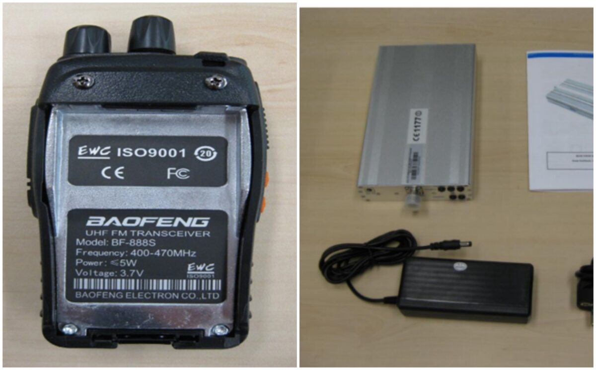 * ασύρματος πομποδέκτης με εμπορική ονομασία BAOFENG BF-888S (Απόφαση ΕΕΤΤ 1138/2 που δημοσιεύθηκε στα ΦΕΚ Β/136/22-01-2025 & Β/2055/30-04-2025, Φωτογραφίες 3 & 4), λόγω μη τήρησης των απαιτήσεων σχετικά με το επαρκές επίπεδο ηλεκτρομαγνητικής συμβατότητας (άρθρο 3.1.β της Οδηγίας 2014/53/ΕΕ).