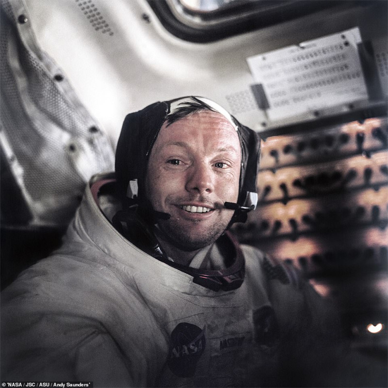 Σε μια από αυτές βλέπουμε τον Νιλ Άρμστρονγκ, μερικές στιγμές πριν το πρώτο του βήμα στο διάστημα το 1969, αποκαλύπτοντας τη συγκίνηση στο πρόσωπο του αστροναύτη. Φαίνεται σαν να υπάρχει ένα δάκρυ στο μάτι του