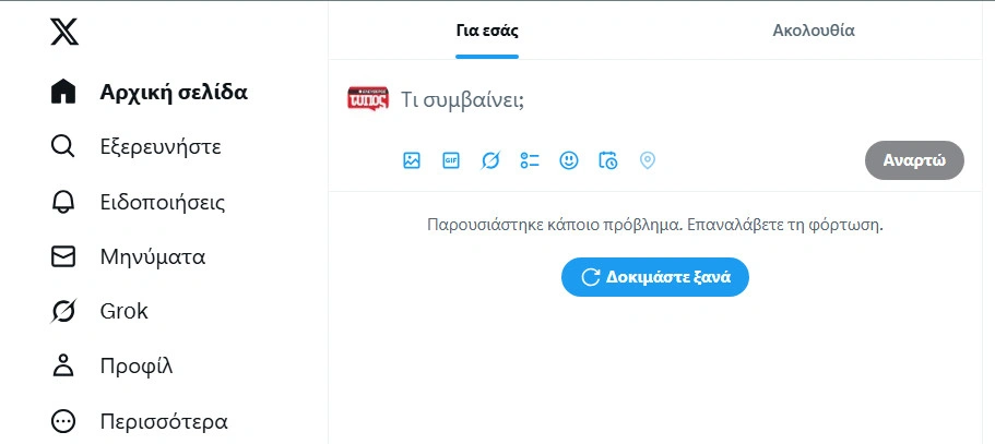 Σύμφωνα με αναφορές, πολλοί χρήστες της δημοφιλούς πλατφόρμας κοινωνικής δικτύωσης αδυνατούν να συνδεθούν στον λογαριασμό τους ή να φορτώσουν το περιεχόμενο της σελίδας. Το πρόβλημα εκδηλώθηκε το μεσημέρι του Σαββάτου. Για το λόγω αυτό έχει δημιουργηθεί αναστάτωση στους χρήστες της δημοφιλούς πλατφόρμας κοινωνικής δικτύωσης.
