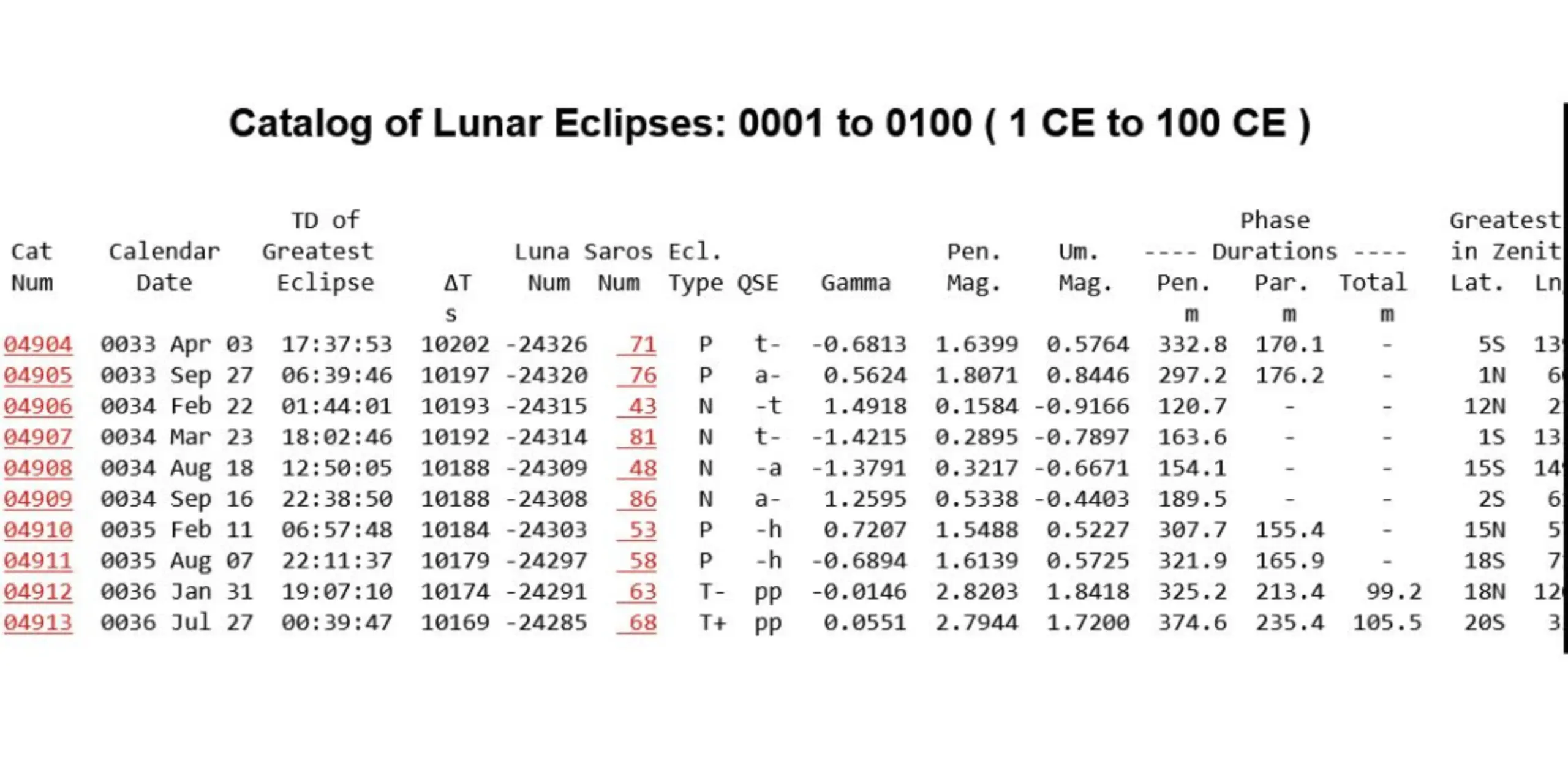 Αστρονομικά μοντέλα δείχνουν ότι η έκλειψη εκείνης της ημέρας ξεκίνησε περίπου στις 3:40 μ.μ. τοπική ώρα και κορυφώθηκε λίγο αργότερα, ενώ θα μπορούσε να γίνει ορατή μετά τη δύση του ηλίου, όταν η Σελήνη ανέτειλε πάνω από την Ιερουσαλήμ με κοκκινωπή απόχρωση.
