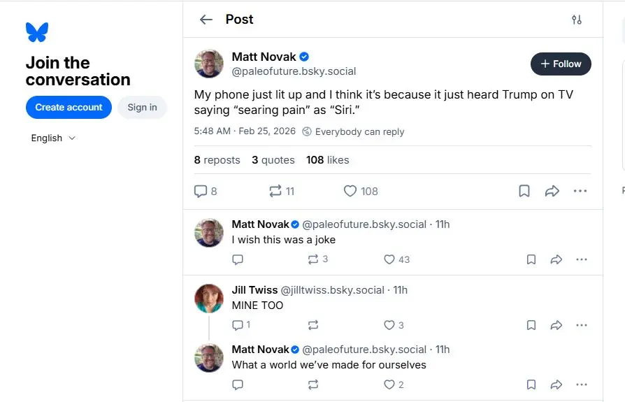 Σε εκείνη τη χρονική στιγμή, ενεργοποιήθηκε η Siri, καθώς η Apple έχει πρόσφατα απλοποιήσει τη φωνητική εντολή, απαιτώντας πλέον μόνο τη λέξη «Siri» αντί για το παραδοσιακό «Hey Siri», προκαλώντας έκπληξη στους κατόχους iPhone, που παρακολουθούσαν την ομιλία του Αμερικανού προέδρου.