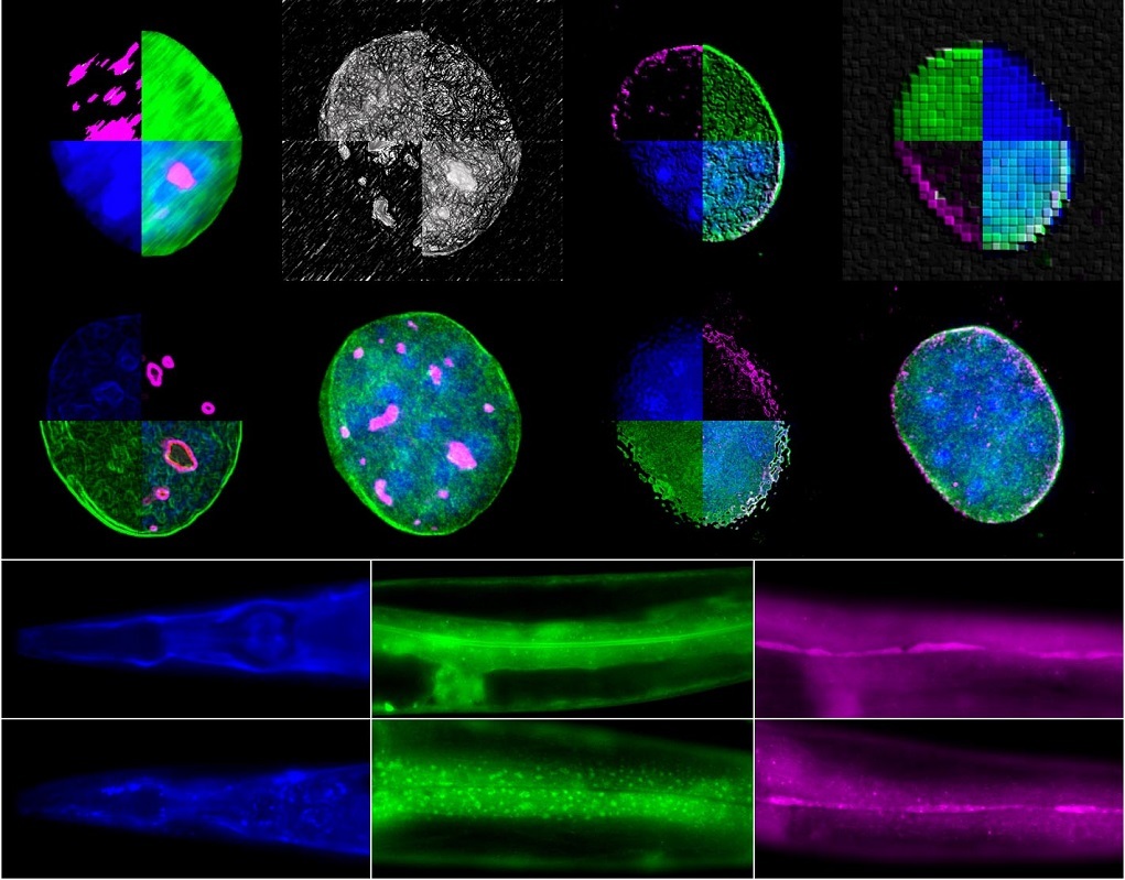 Ωστόσο, οι μοριακοί και κυτταρικοί μηχανισμοί που επιτηρούν και διασφαλίζουν την δομή του πυρήνα και του πυρηνίσκου παραμένουν αδιευκρίνιστοι. Δεν είναι, επίσης, γνωστό αν ο προοδευτικός εκφυλισμός της αρχιτεκτονικής του πυρήνα, που παρατηρείται κατά τη γήρανση, και σε ασθένειες που σχετίζονται με την ηλικία, αποτελεί επακόλουθο, ή απλή συνέπεια αυτών των καταστάσεων, ή συνεισφέρει καθοριστικά στη διαδικασία της γήρανσης και της παθογένεσης των προγεροειδών συνδρόμων. Χρησιμοποιώντας δύο πειραματικούς οργανισμούς, τον νηματώδη Caenorhabditis elegans και το ποντίκι, οι ερευνητές του ΙΜΒΒ-ΙΤΕ μελέτησαν αυτά τα βασικά ερωτήματα. Η διατήρηση της πυρηνικής δομής και λειτουργίας απαιτεί τη συνεχή και αυστηρά ρυθμιζόμενη ανακύκλωση των ελαττωματικών ή κατεστραμμένων πυρηνικών συστατικών.
