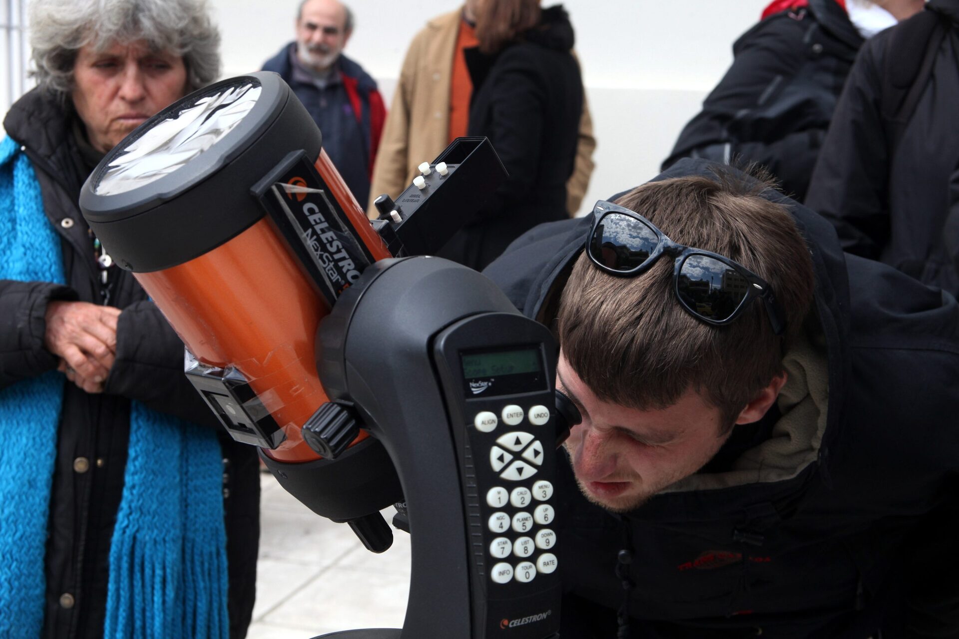 Επιπλέον διακρίναμε αρκετές ηλιακές προεξοχές, καθώς και λεπτομέρειες της επιφάνειας του Ήλιου. Εκτός από το νέο τηλεσκόπιο που εγκαινιάστηκε σήμερα, είχαμε άλλα δυο στη διάθεση μας στο Αστεροσκοπείο. Είναι ένα φαινόμενο που δεν μπορείς να δεις με γυμνό μάτι, καθώς είναι μεγάλη η επικινδυνότητα. Είναι εξαιρετικά βλαβερές οι ακτίνες του Ήλιου για το μάτι για περισσότερο από μερικά κλάσματα του δευτερολέπτου».