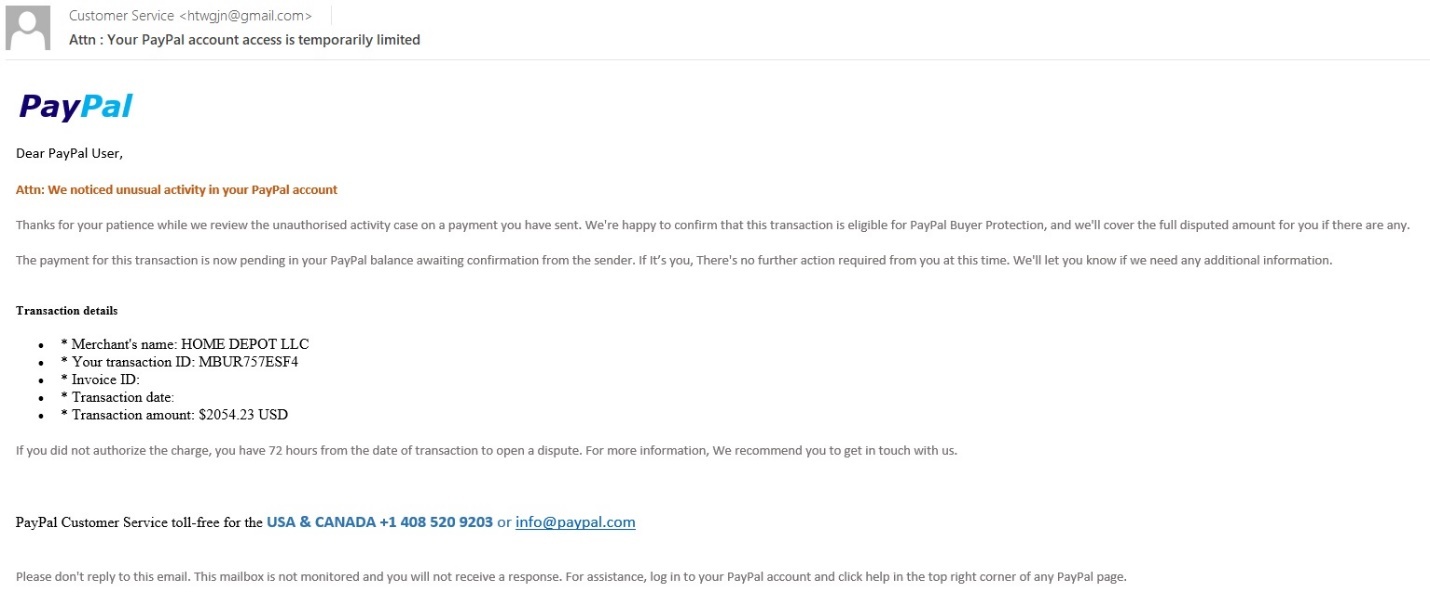 Ψεύτικη ειδοποίηση από το PayPal για αγορά έναντι μεγάλου χρηματικού ποσού