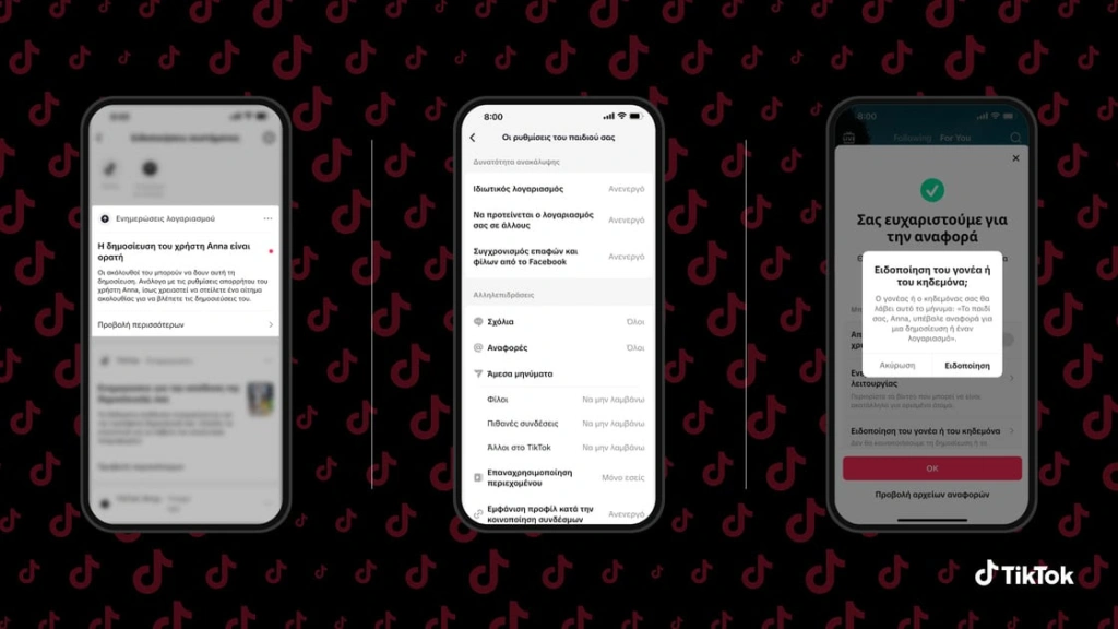 Οι λογαριασμοί εφήβων στο TikTok περιλαμβάνουν περισσότερες από 50 ειδικά διαμορφωμένες λειτουργίες και ρυθμίσεις που προάγουν την ασφάλεια, ενώ παράλληλα ενθαρρύνουν τη δημιουργική έκφραση, τη σύνδεση με φίλους και την ανακάλυψη νέων γνώσεων μέσα από την πλατφόρμα. Εκτός από τις παραπάνω ενσωματωμένες δικλίδες ασφαλείας, το TikTok διαθέτει τη λειτουργία Family Pairing, που επιτρέπει σε γονείς και κηδεμόνες να προσαρμόζουν βασικές ρυθμίσεις του λογαριασμού του εφήβου, σύμφωνα με τις ιδιαίτερες ανάγκες του. Παράλληλα, μέσα από τη Συνεργασία Ψηφιακής Ασφάλειας για Οικογένειες, συνεχίζουμε να παρέχουμε εργαλεία που ενισχύουν τον ανοιχτό διάλογο για την ψηφιακή εμπειρία των εφήβων και υποστηρίζουν τη θετική και ισορροπημένη χρήση του TikTok.