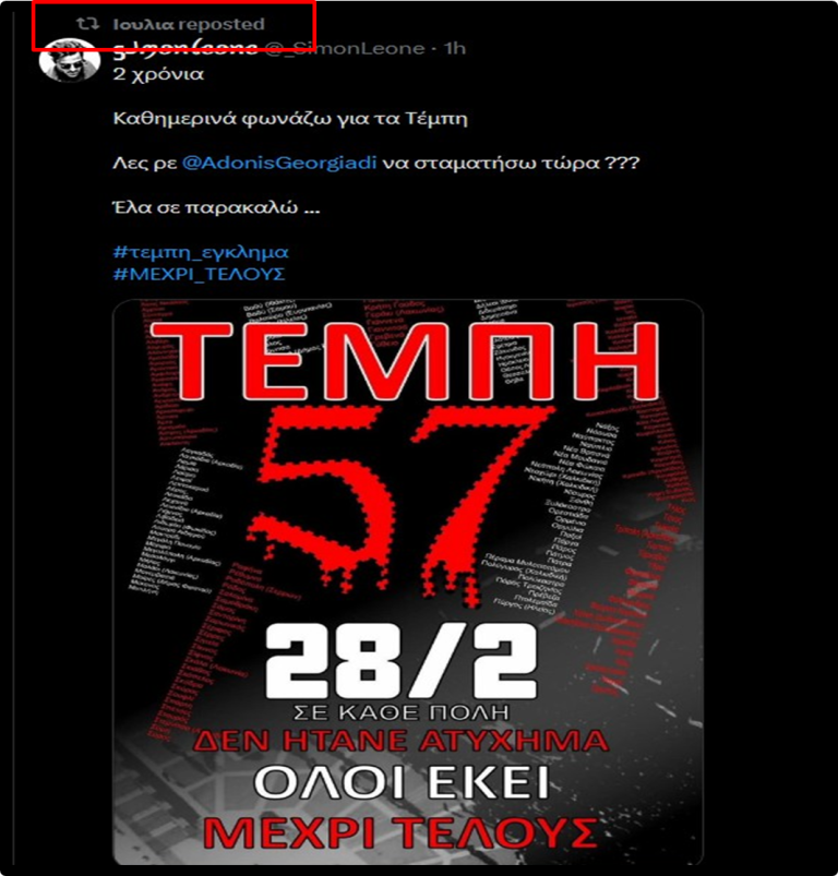 Σύμφωνα με το ρεπορτάζ του μέσου, δύο bots που έχουν δημιουργηθεί πριν από μερικές εβδομάδες, έχουν ήδη συγκεντρώσει αθροιστικά πάνω από 10.000 δημοσιεύσεις. Οι περισσότερες απ’ αυτές τις αναρτήσεις αφορούν στη διαμαρτυρία των Τεμπών. Με τα ίδια στοιχεία οι ίδιοι λογαριασμοί, πριν από λίγο καιρό, διακινούσαν περιεχόμενο στα ρωσικά, στα κινεζικά, στα ρουμανικά.
