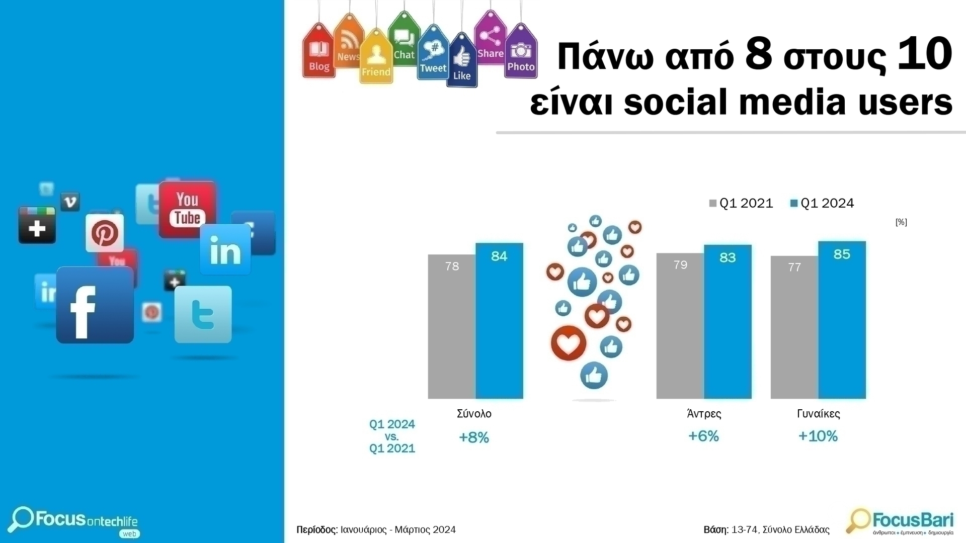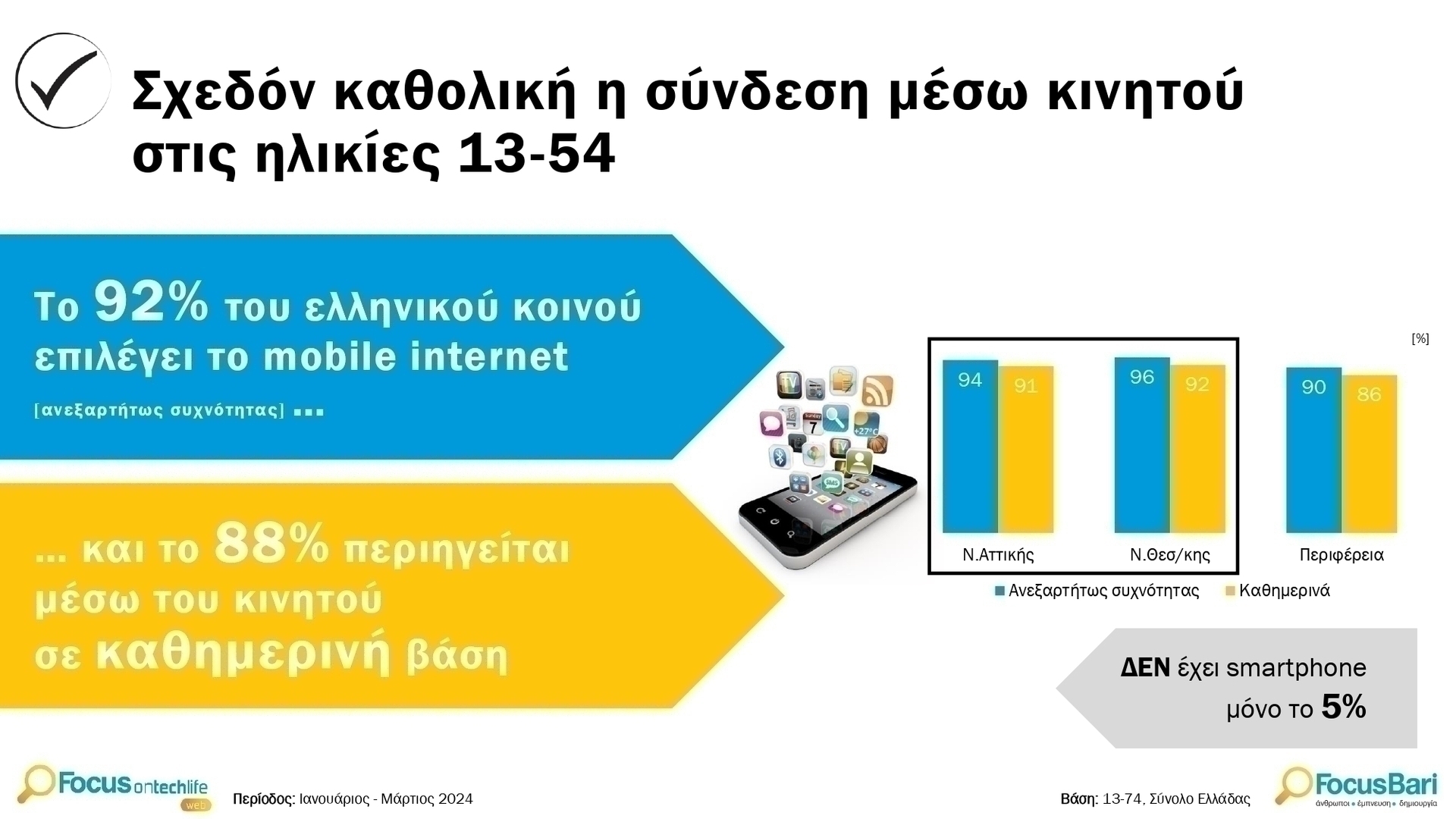 Η κυριαρχία του κινητού τηλεφώνου είναι αδιαμφισβήτητη, με το 95% των χρηστών να συνδέεται μέσω αυτού. Η χρήση των social media αποτελεί τον πρωταρχικό λόγο για την πρόσβαση στο διαδίκτυο, με δύο στους τρεις να ομολογούν ότι αφιερώνουν χρόνο στο “χαζοδιάλεγμα” στα κοινωνικά δίκτυα.