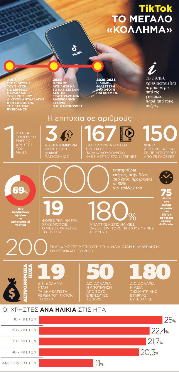 Είναι εντυπωσιακό ότι το TikTok κατατάχθηκε ως η εφαρμογή με τις περισσότερες λήψεις το 2021. Ξεπέρασε τα αγαπημένα μέσα κοινωνικής δικτύωσης, όπως το Instagram, το Facebook και το Snapchat. Μεγάλο μέρος της ανάπτυξης της εφαρμογής προέρχεται από την αύξηση των χρηστών της κατά τη διάρκεια της πανδημίας Covid-19, ειδικά την περίοδο του lockdown τους πρώτους μήνες του 2020. Σύμφωνα με την ιστοσελίδα Statista, το TikTok σημείωσε ανάπτυξη κατά 180% στις ηλικίες 15-25 ετών το συγκεκριμένο χρονικό διάστημα. «Είναι μια πλατφόρμα πολύ σαγηνευτική, με ιδιαίτερα εθιστική επίδραση. Ειδικά για τα παιδιά είναι πολύ ενδιαφέρουσα καθώς τα βίντεο διαρκούν λίγο και έχουν πραγματικά ωραία δοσμένο περιεχόμενο. Οι έφηβοι μου λένε ότι χάνουν το χρόνο όταν είναι μέσα στο TikTok», σημειώνει η κυρία Τσίτσικα.