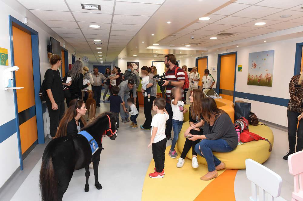 Ήταν μία ξεχωριστή ημέρα με πολλή χαρά και έκπληξη για τους μικρούς μας φίλους που έβλεπαν δύο αξιολάτρευτα, απαλά και γλυκά μικροσκοπικά θεραπευτικά αλογάκια, την Ήβη και τον Ηρακλή, να κάνουν βόλτες στους διαδρόμους των Εξωτερικών Ιατρείων, του Τμήματος Επειγόντων Περιστατικών του ΙΑΣΩ Παίδων καθώς και στα δωμάτια νοσηλείας, υπό την καθοδήγηση ειδικών εκπαιδευτικών.